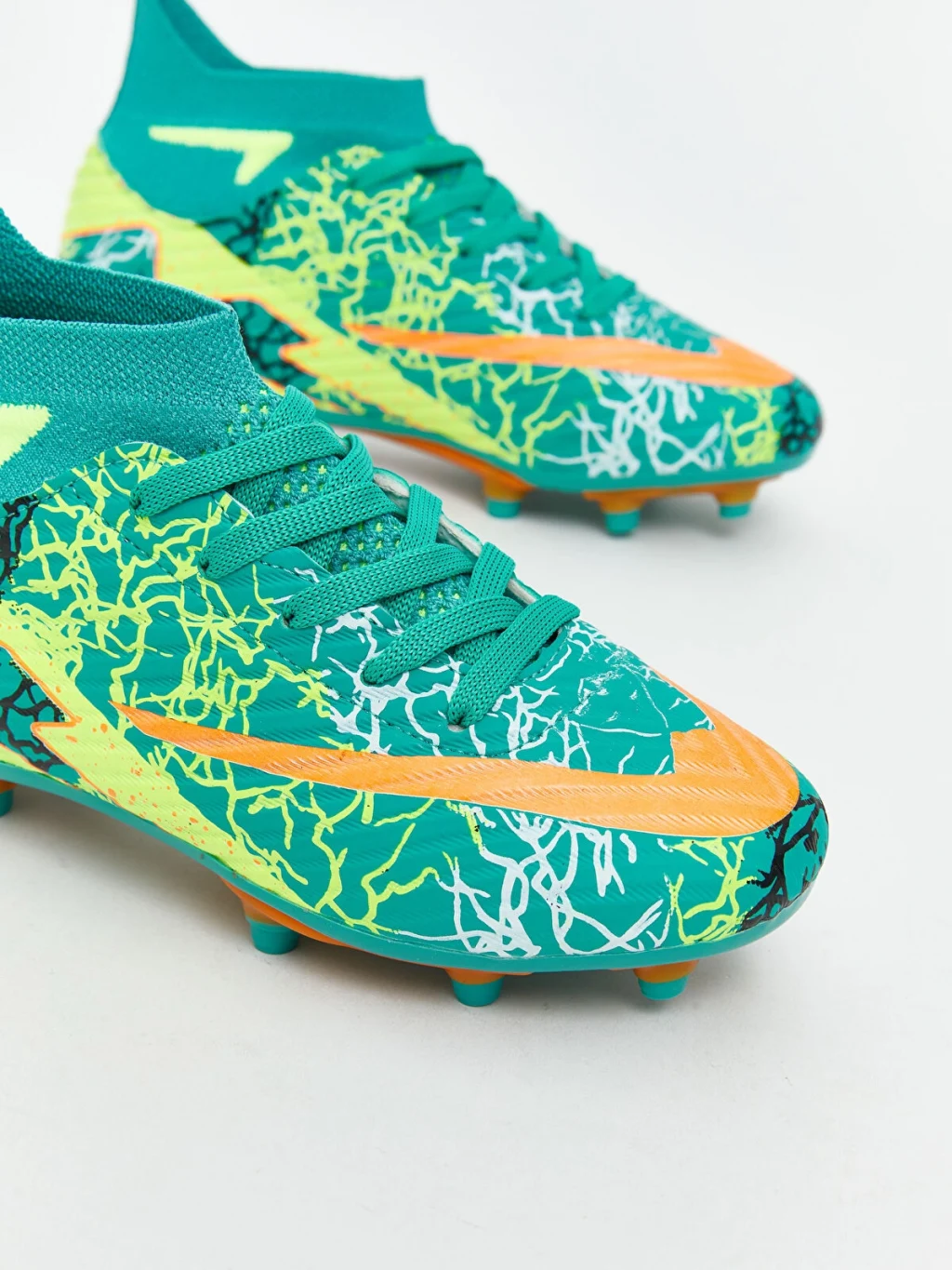 Bilek kısmı esnek kumaştan üretilmiş, desenli erkek çocuk krampon. Bağcık kapamalıdır ve çivili tabana sahiptir.
