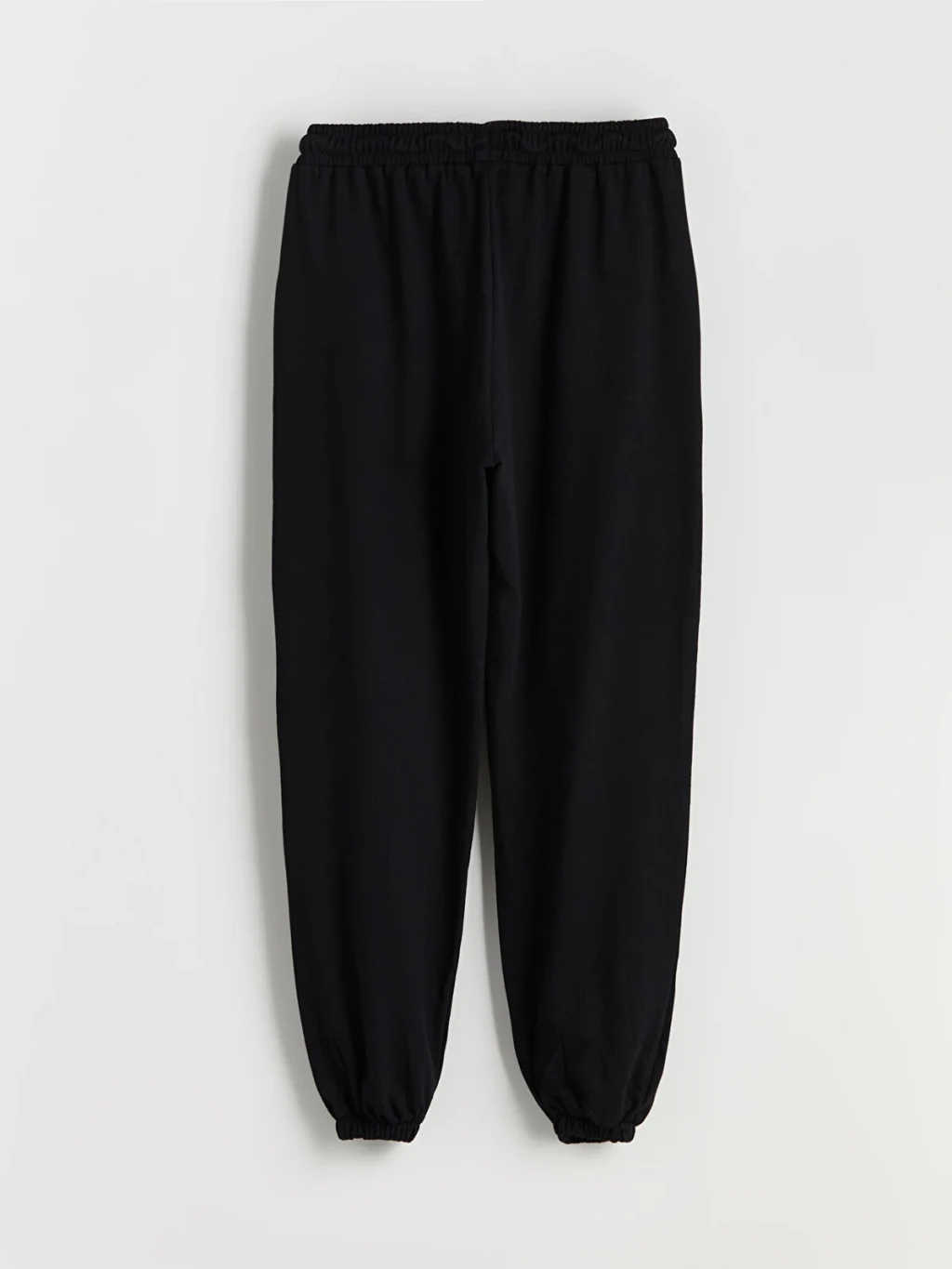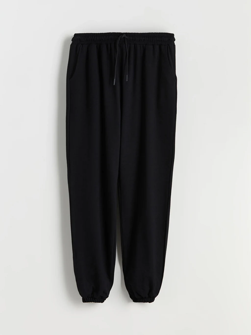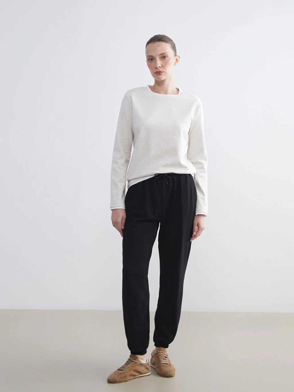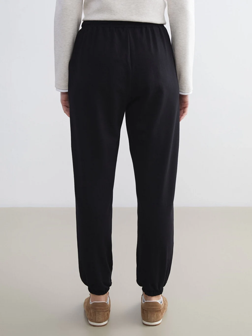Beli lastikli kadın jogger eşofman altı, 2 iplik kumaştan üretilmiştir. Paçaları lastikli, ikin yandan cepli, ve ayarlanabilir ipli tasarıma sahiptir.