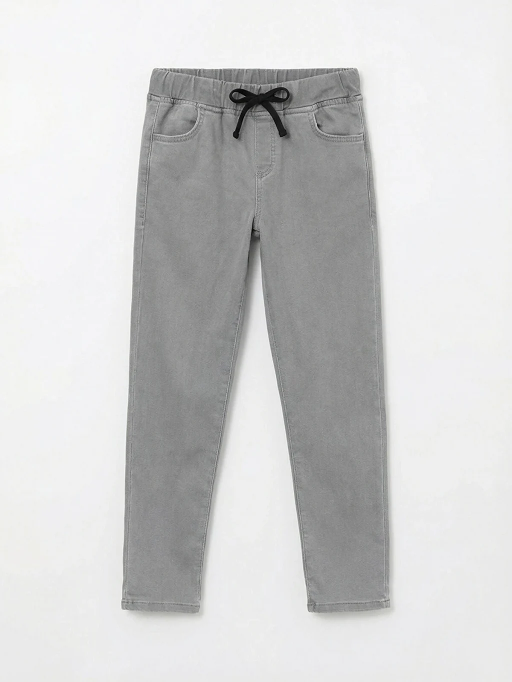 Dar kalıp erkek çocuk jean pantolon, pamuklu denim kumaştan üretilmiştir. Beli lastikli ve ayarlanabilir bağcıklıdır, cepli tasarıma sahiptir.