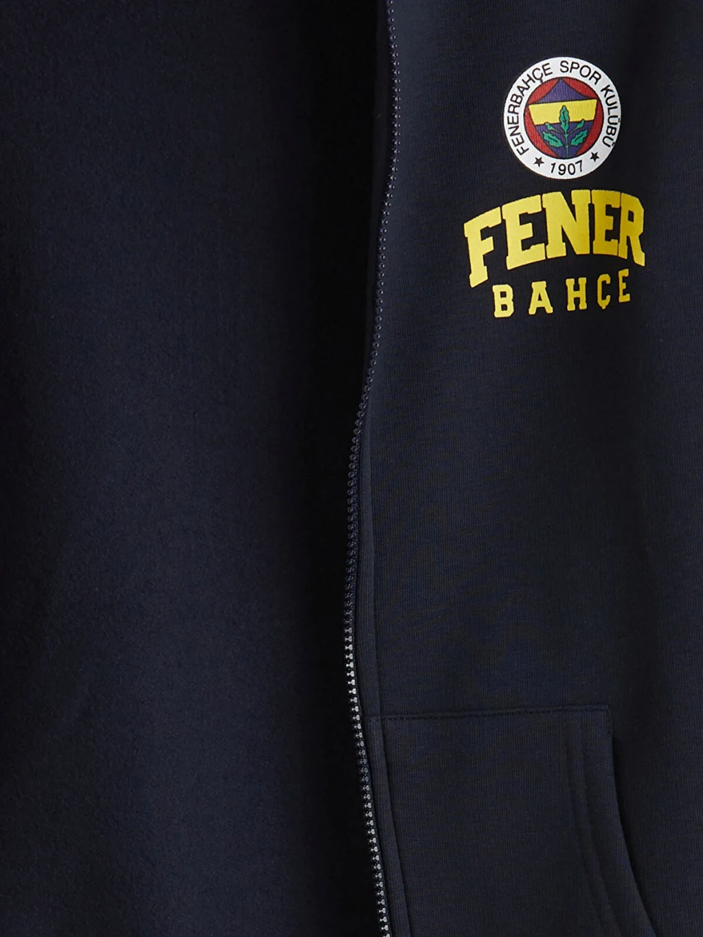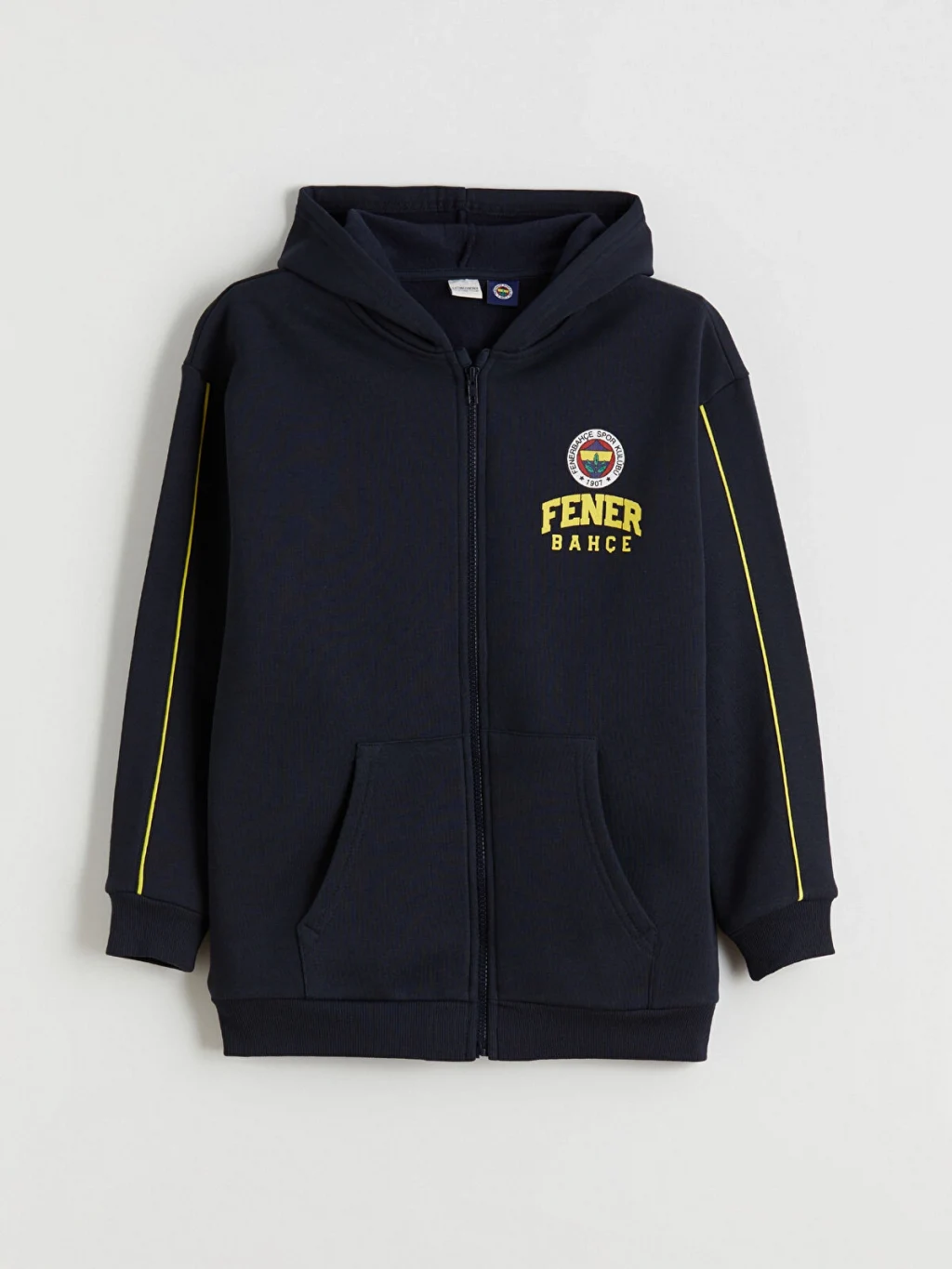 Fenerbahçe lisanslı erkek çocuk sweatshirt; kapüşonlu, uzun kollu ve önden fermuar kapamalıdır. Kanguru cepli ve kolları şerit detaylıdır.