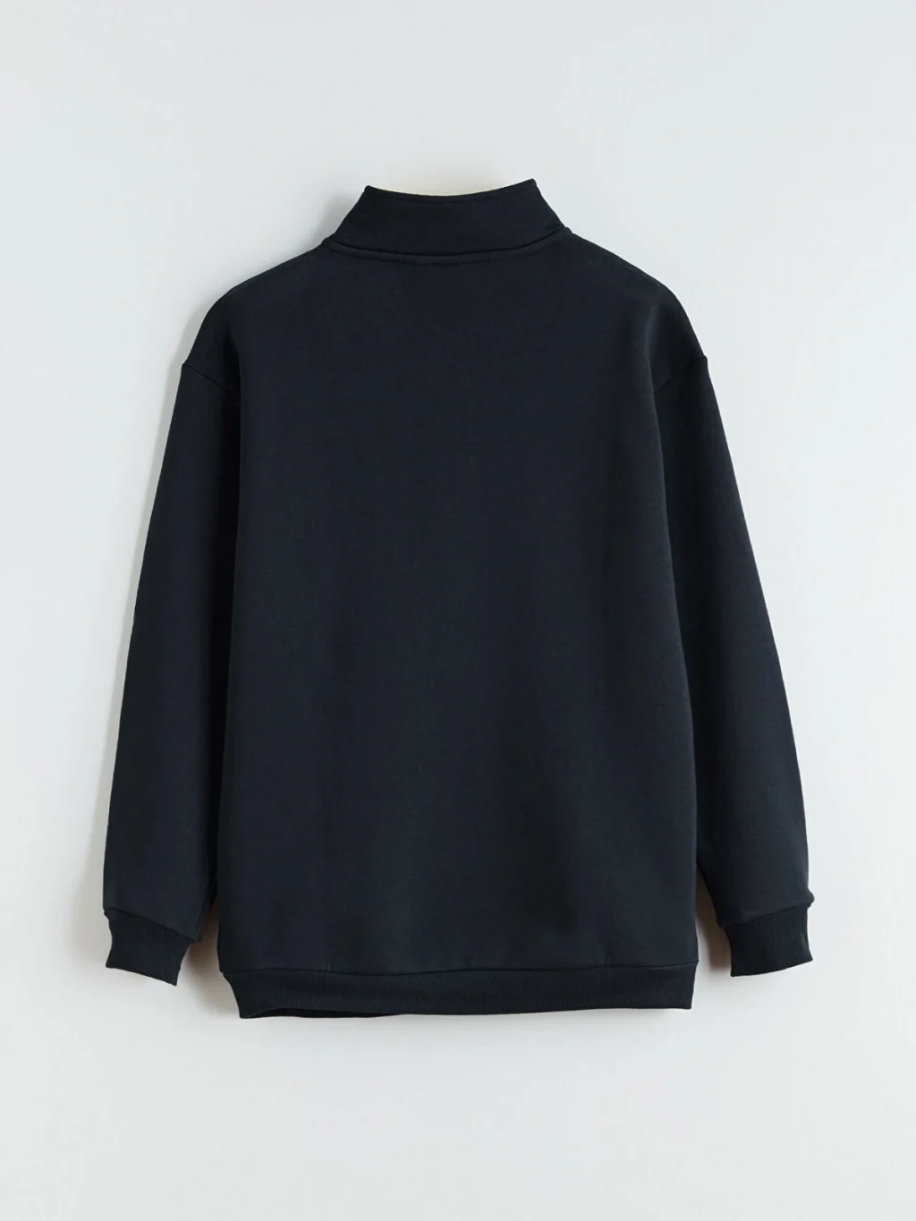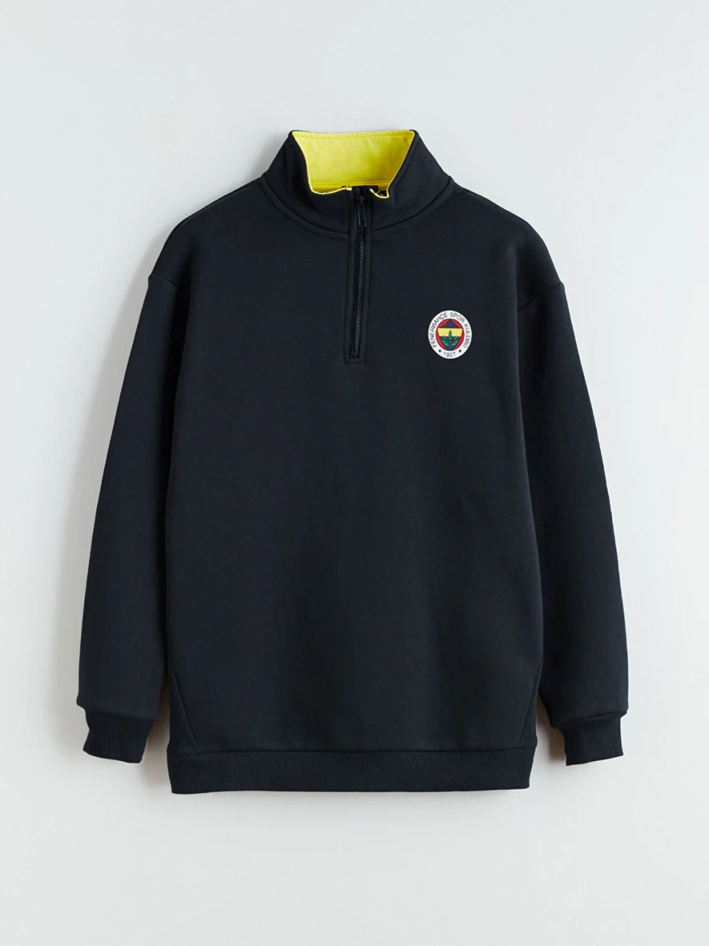 Fenerbahçe lisanslı, dik yakalı erkek çocuk sweatshirt, 2 iplik şardonlu kumaştandır. Yarım fermuar kapamalıdır, kol ve etek ucu ribanalıdır.
