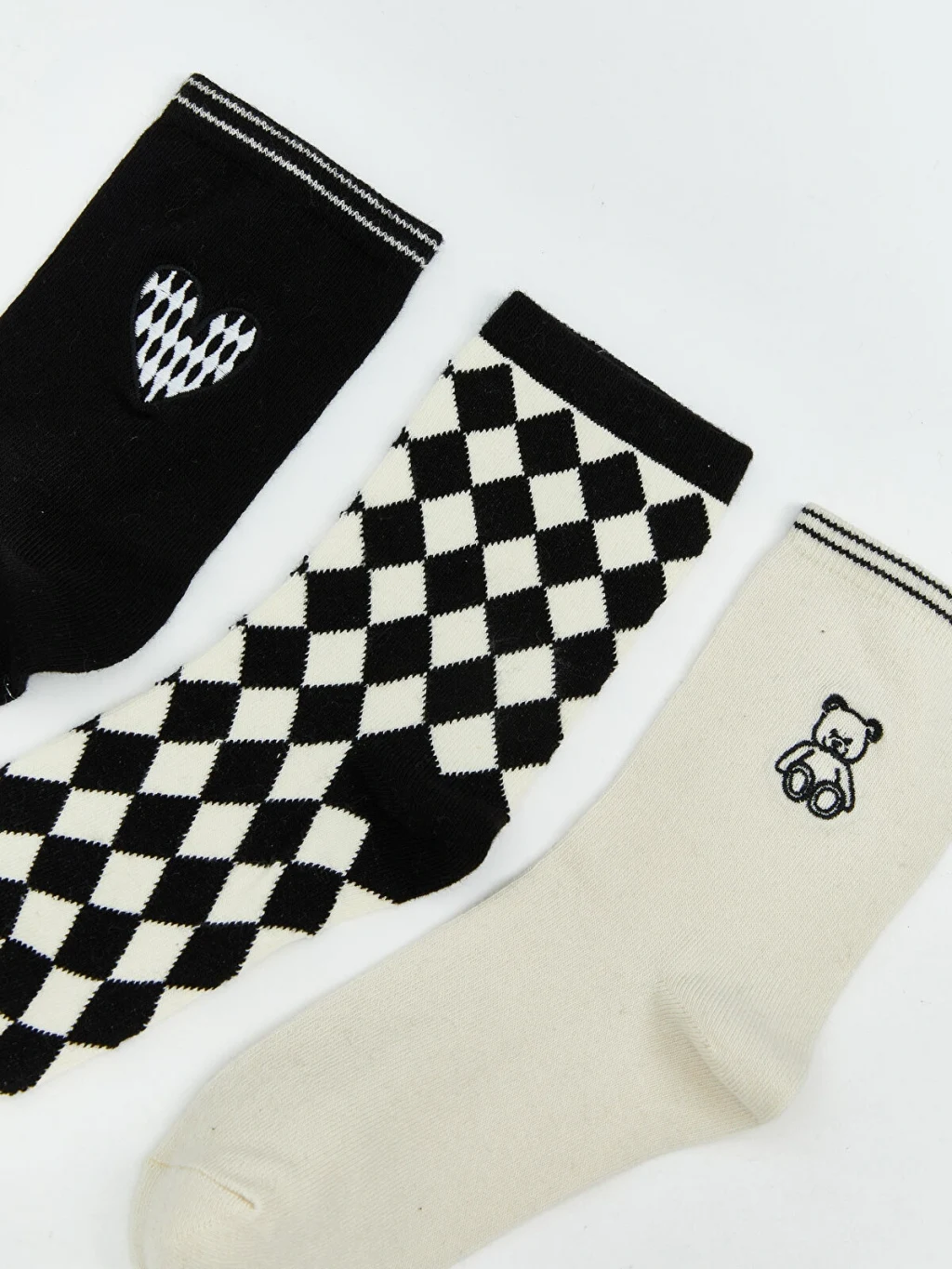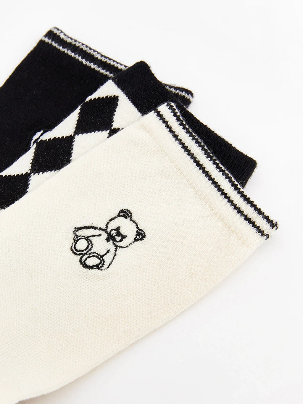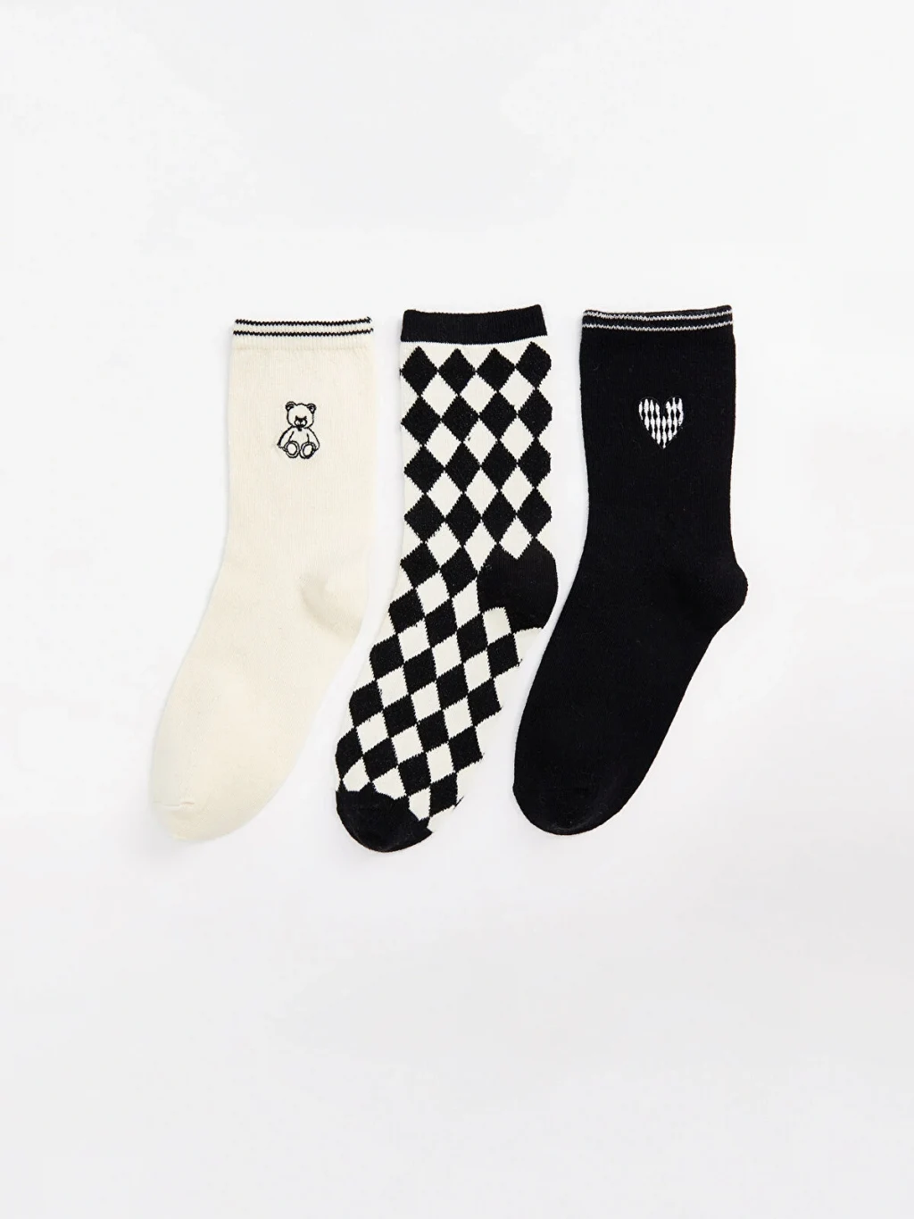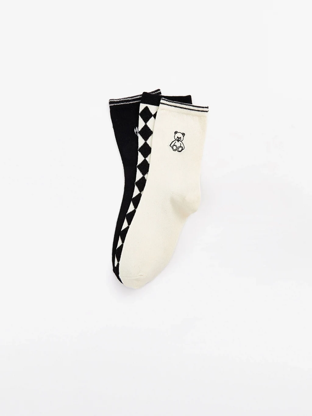 Yüksek pamuk içeriğine sahip desenli soket çoraplar, ayakları rahat ve sıcak tutar. Desenli 3 çift soket çoraptan oluşmaktadır.