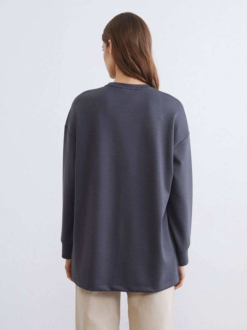 Bisiklet yaka kadın tişört, dalgıç kumaştan üretilmiştir. Bilekleri ribanalıdır.