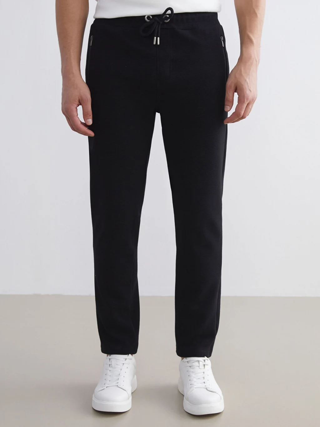 Orta kalınlıkta ottoman kumaştan üretilen erkek eşofman altı, beli lastikli ve ayarlanabilir bağcıklıdır. Yan cepleri fermuarlıdır.