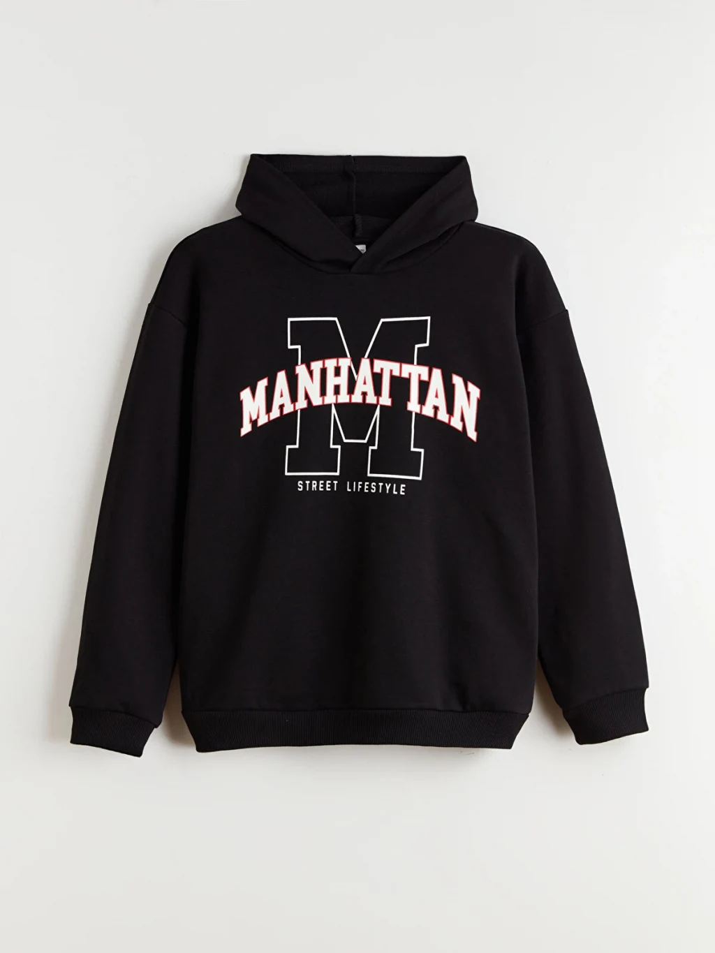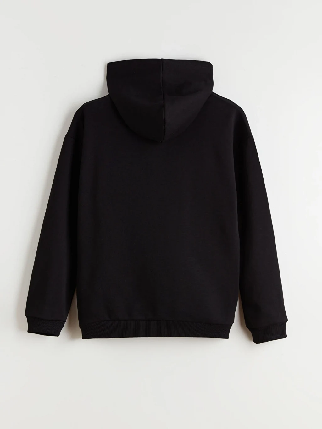 Kapüşonlu ve uzun kollu erkek çocuk sweatshirt, kalın 3 iplik şardonlu kumaştan üretilmiştir. Önü yazı baskılı, kol ve etek ucu ribanalıdır.