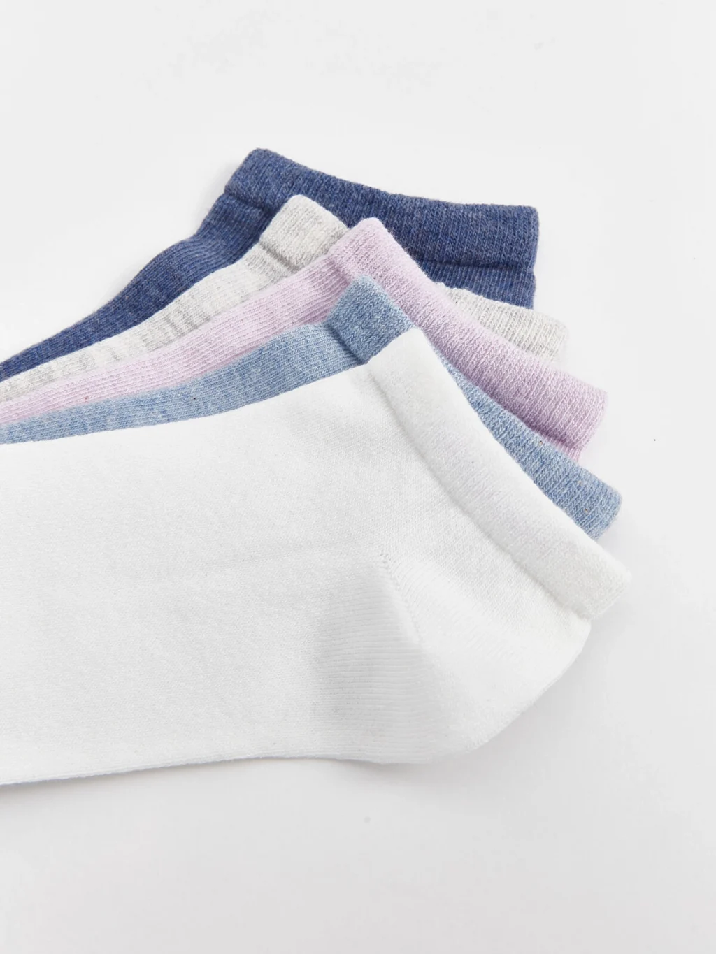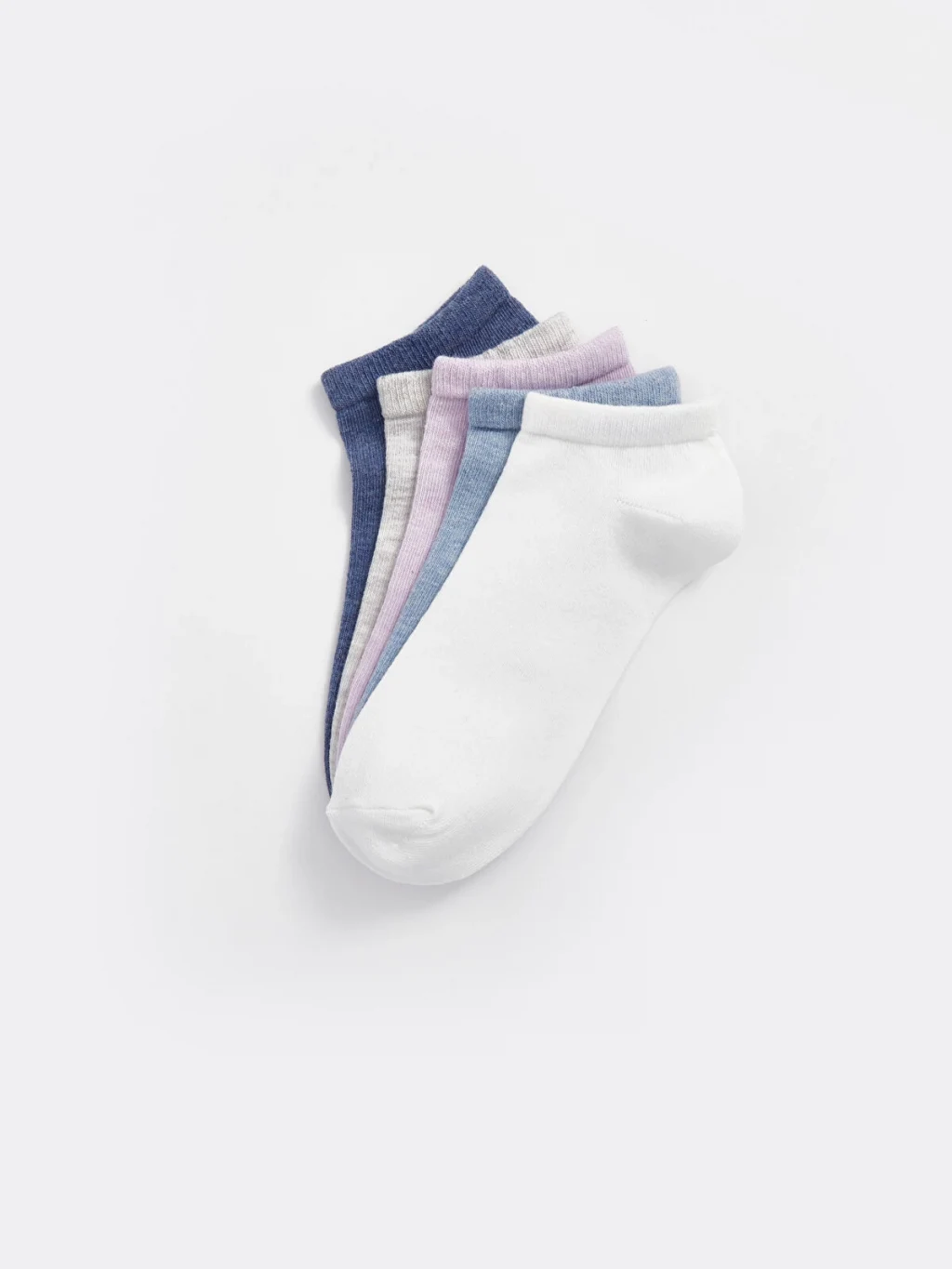 Pamuk karışımlı elyaftan üretilen patik çoraplar, yumuşak ve konforlu bir dokuya sahiptir. Düz, sade tasarımıyla doğal bir görünüm sunar ve 5 çift patik çoraptan oluşmaktadır.