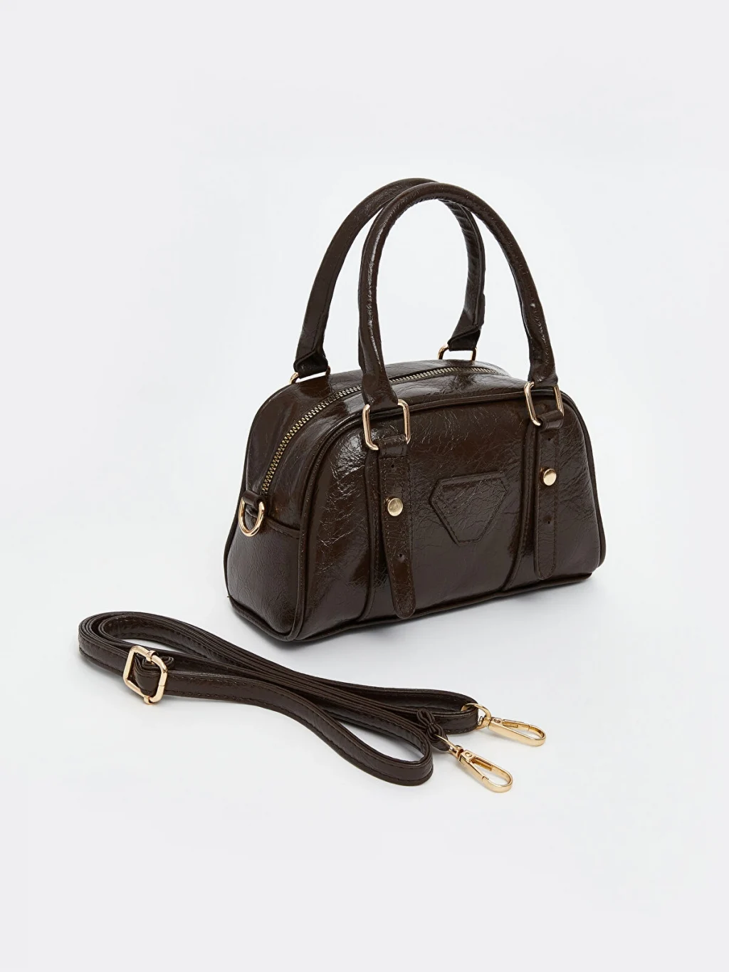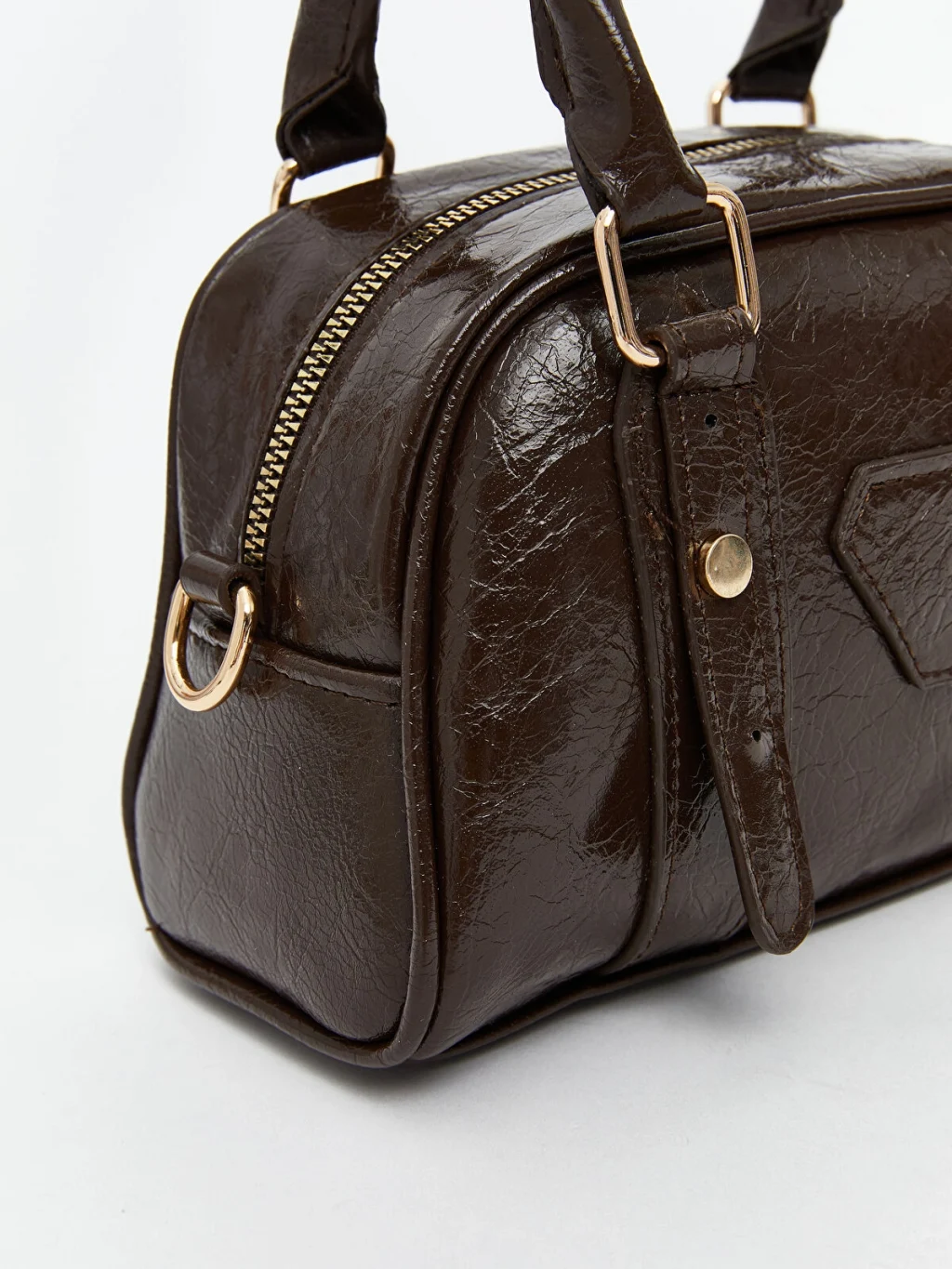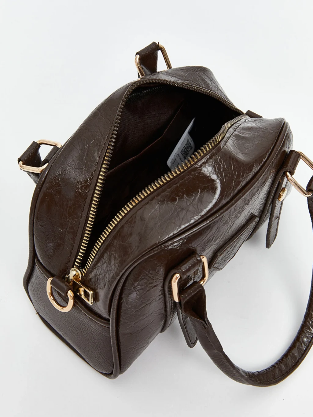Deri görünümlü kadın kol çantası fermuarlı göze ve geniş iç hacime sahiptir. Çıkarılabilir askısı mevcuttur, omuzda da kullanılabilir.