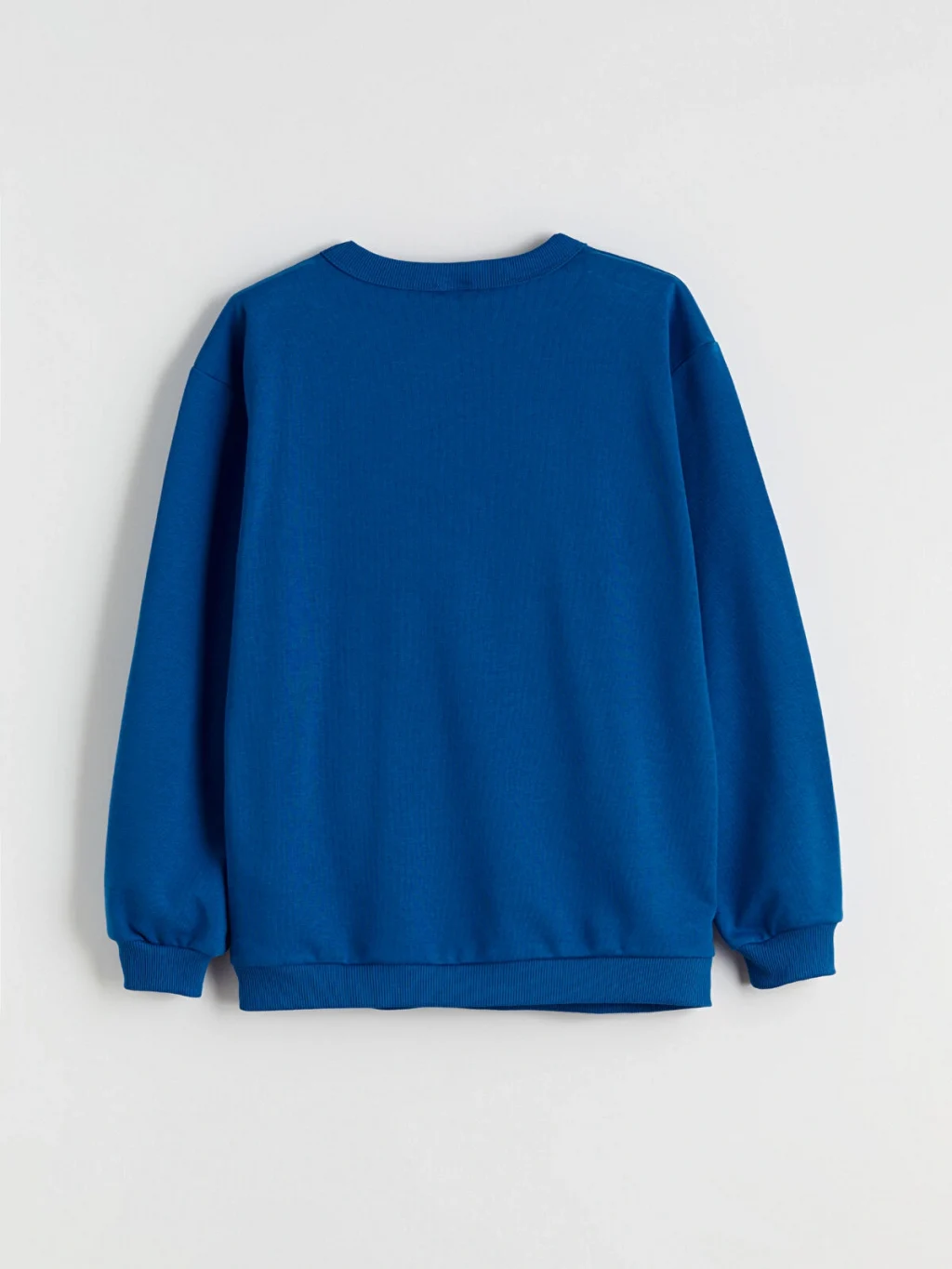 3 iplik kumaştan üretilen erkek çocuk sweatshirt, bisiklet yaka ve ribanalı tasarıma sahiptir.