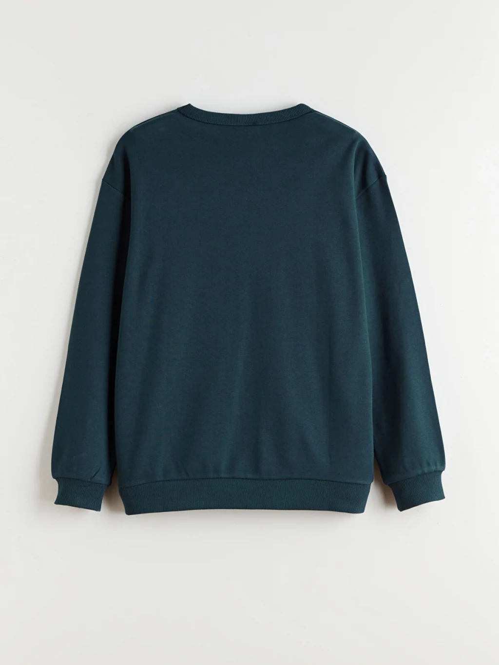 Bisiklet yaka, uzun kollu erkek çocuk sweatshirt, %100 pamuk interlok kumaştan üretilmiştir. Önü baskılı modelin kol ve etek ucu ribanalıdır.