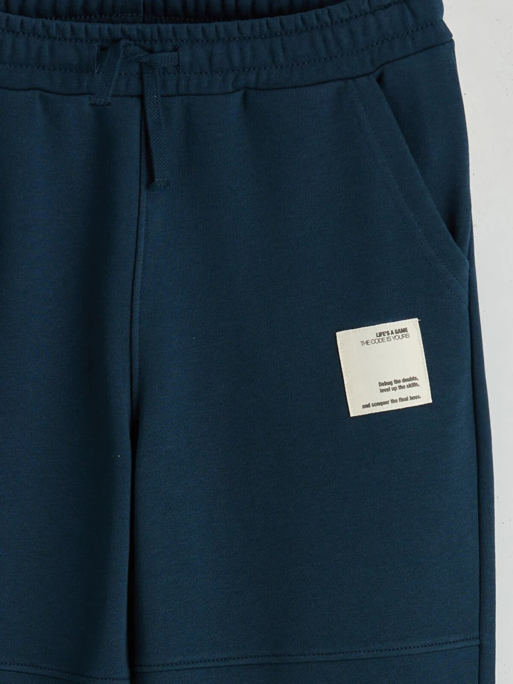 Yüksek pamuk içerikli kalın 3 iplik şardonlu kumaştan üretilen erkek çocuk eşofman altının beli ve paçaları lastiklidir. Beli ayarlanabilir iplidir.