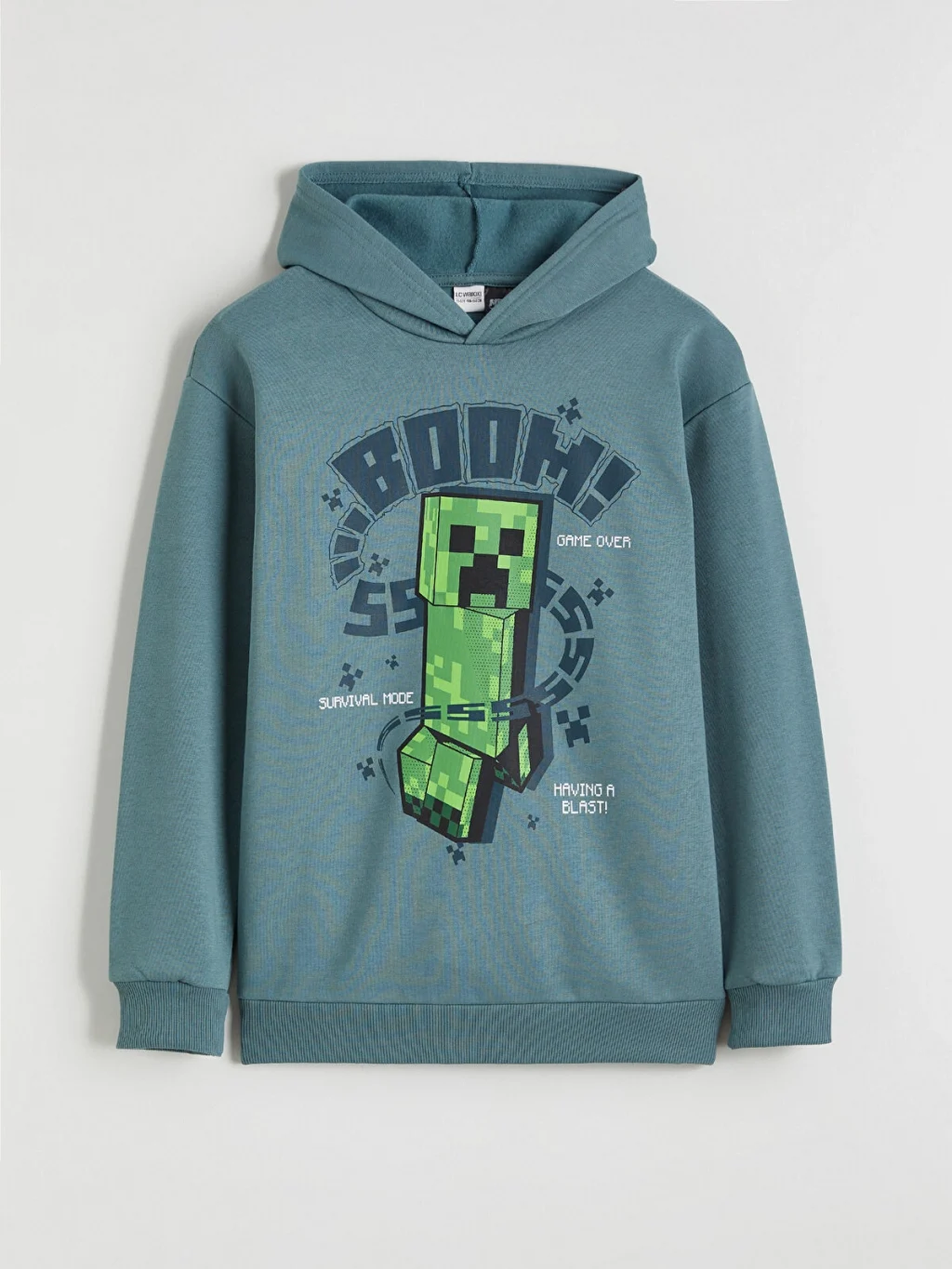Minecraft lisanslı, kapüşonlu erkek çocuk sweatshirt, uzun kolludur. Kalın 3 iplik şardonlu kumaştan üretilmiştir, kol ve etek ucu ribanalıdır.
