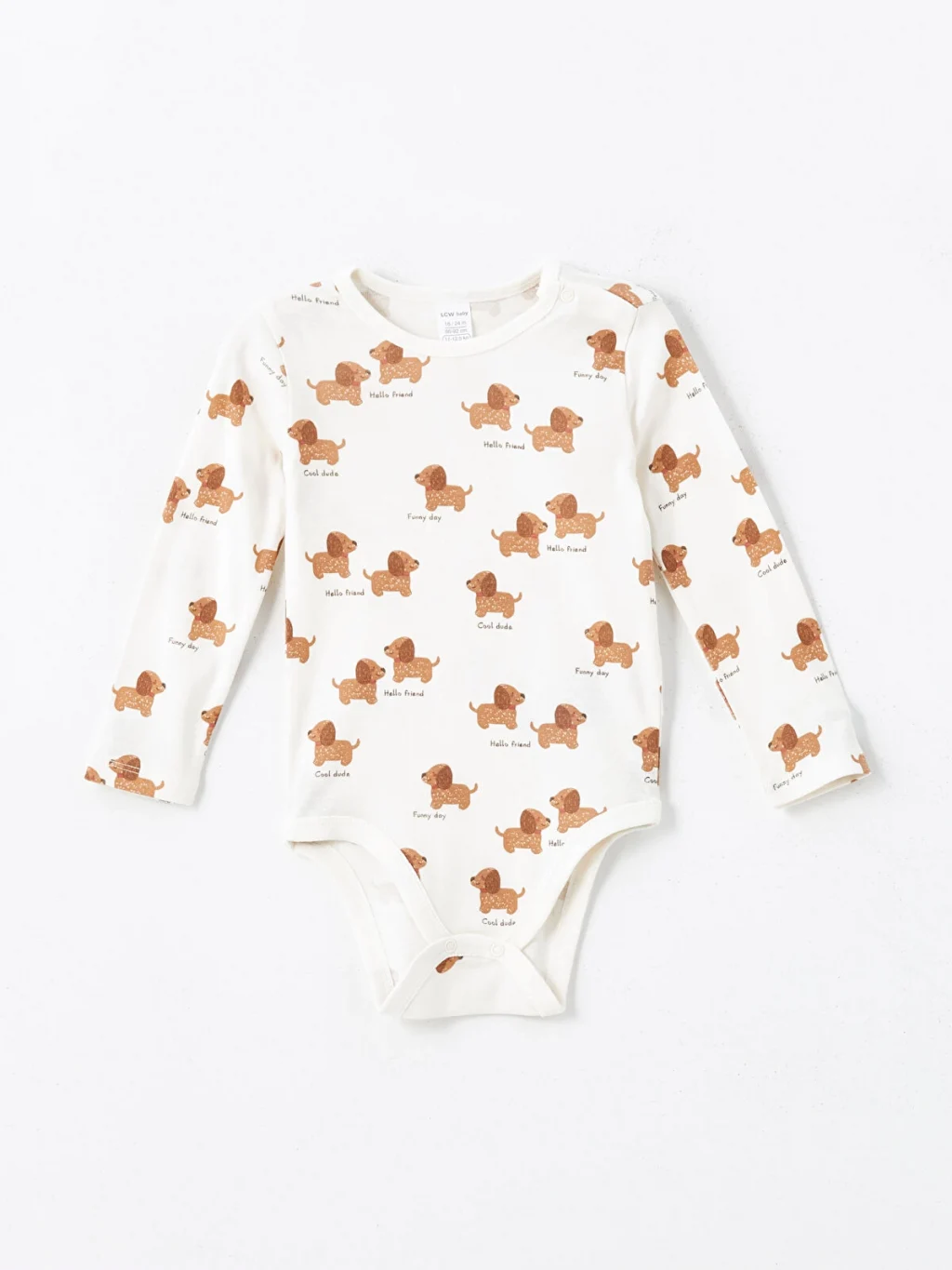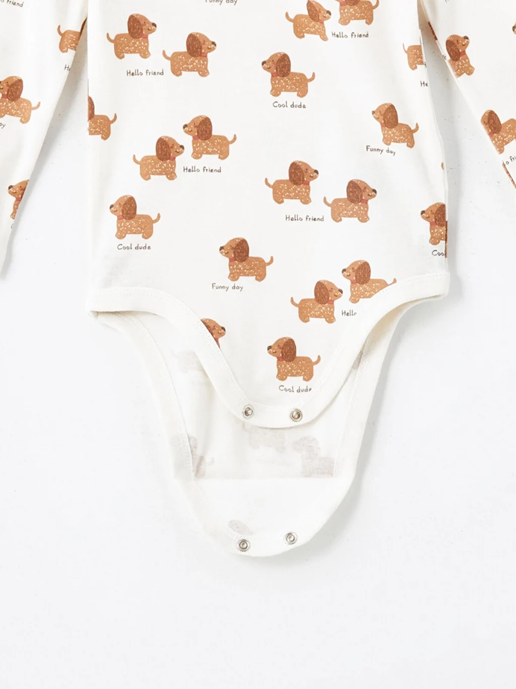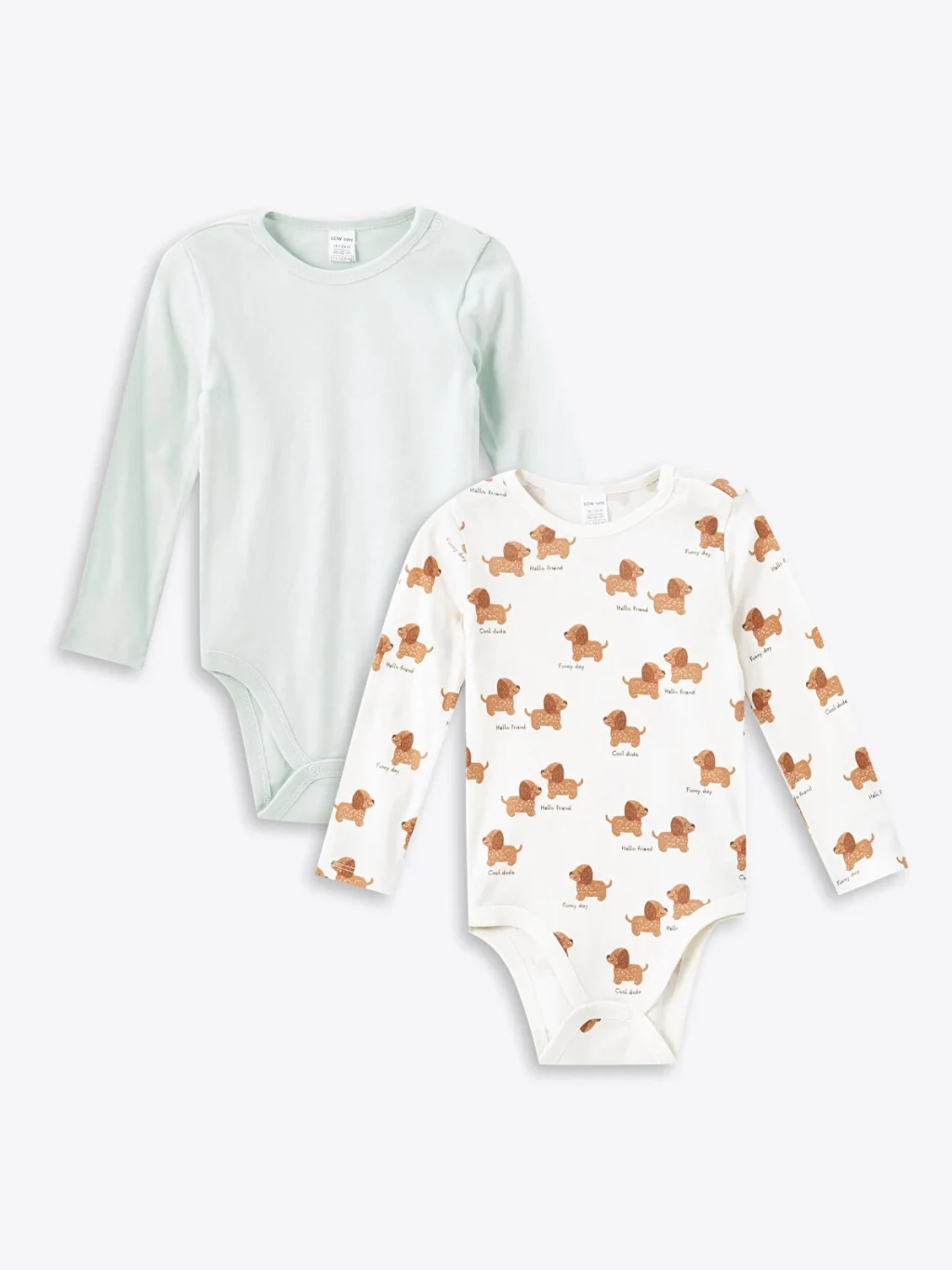 Bir parçası sevimli köpek baskısıyla dikkat çekerken, diğeri sade tasarımıyla basic bir seçenek sunar. Yumuşak dokusu ve ağdan çıtçıtlı yapısıyla bebeğinizin konforunu ön planda tutar.