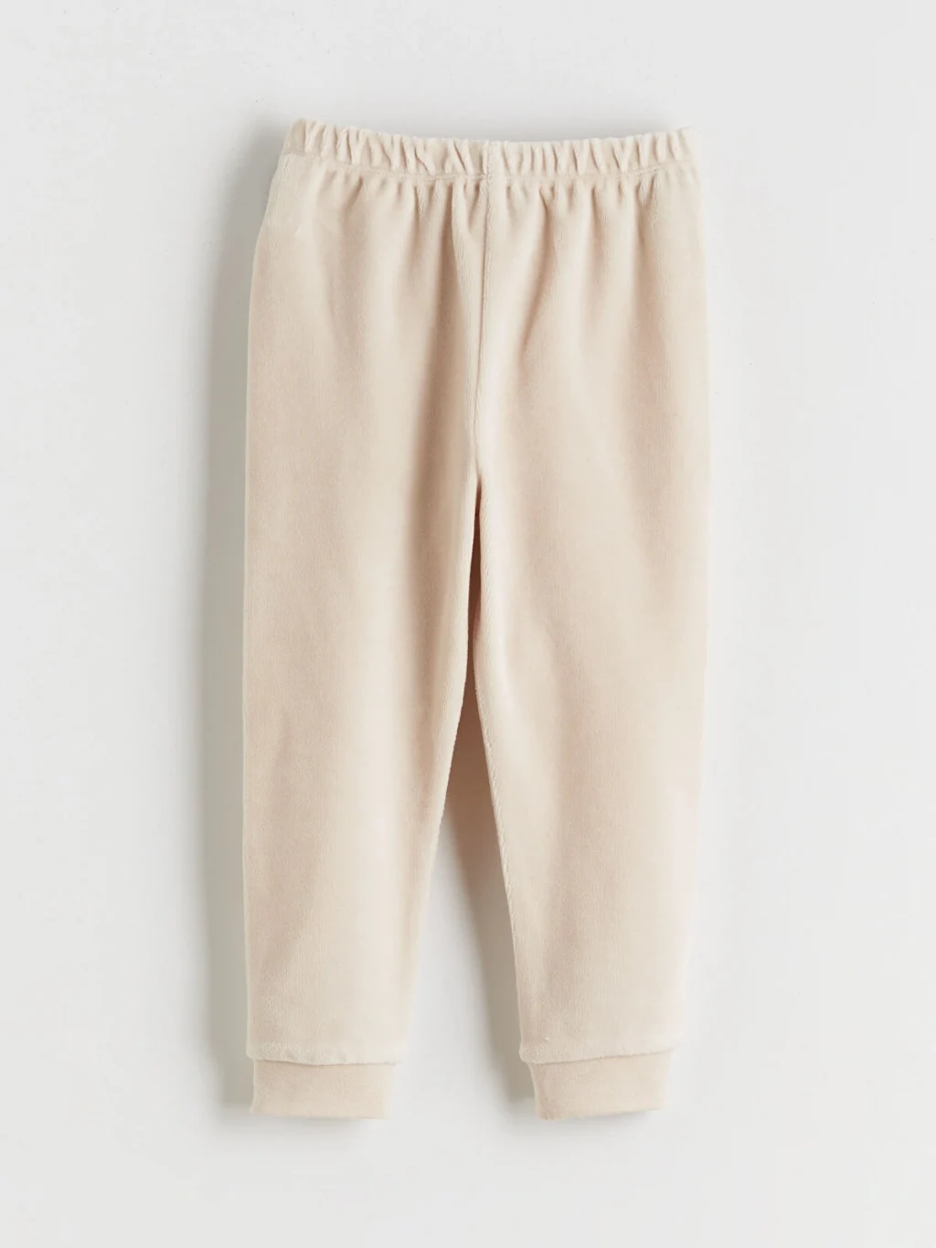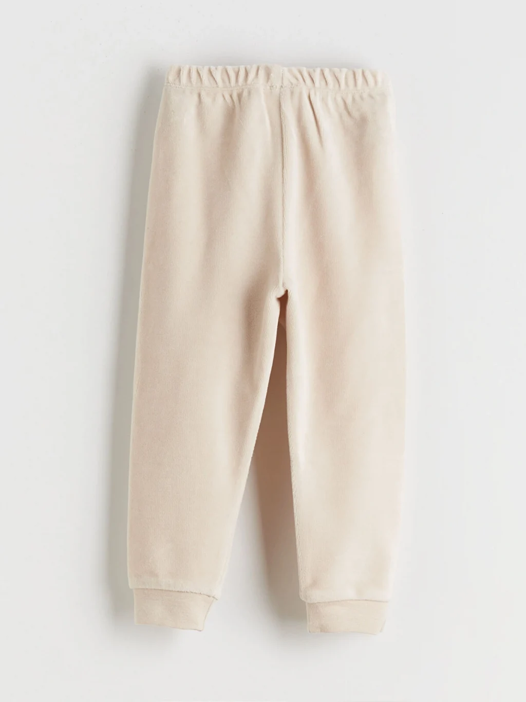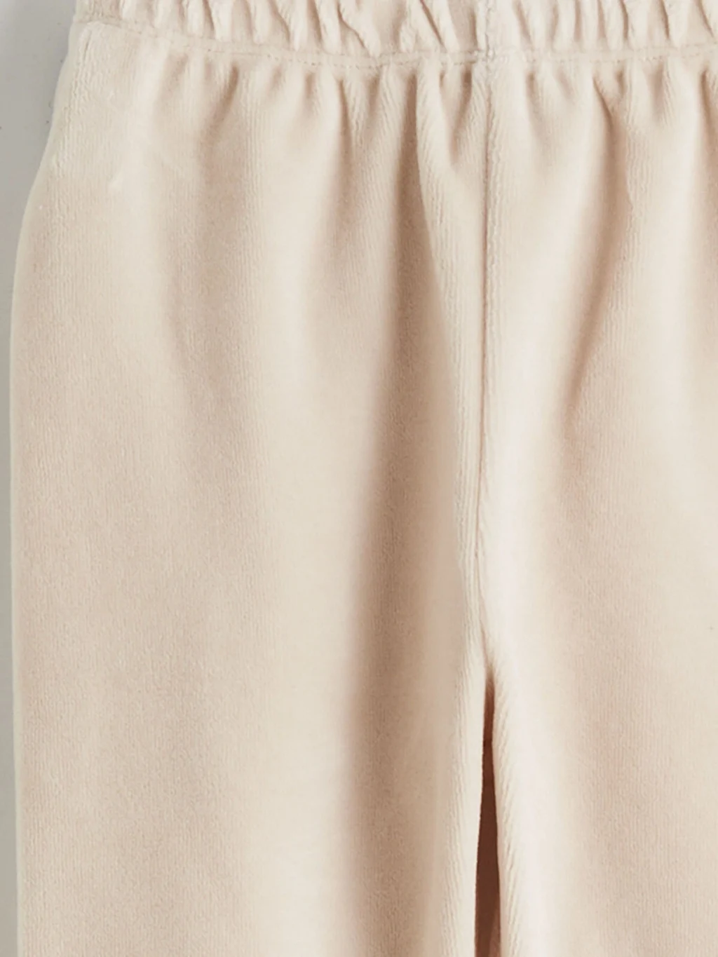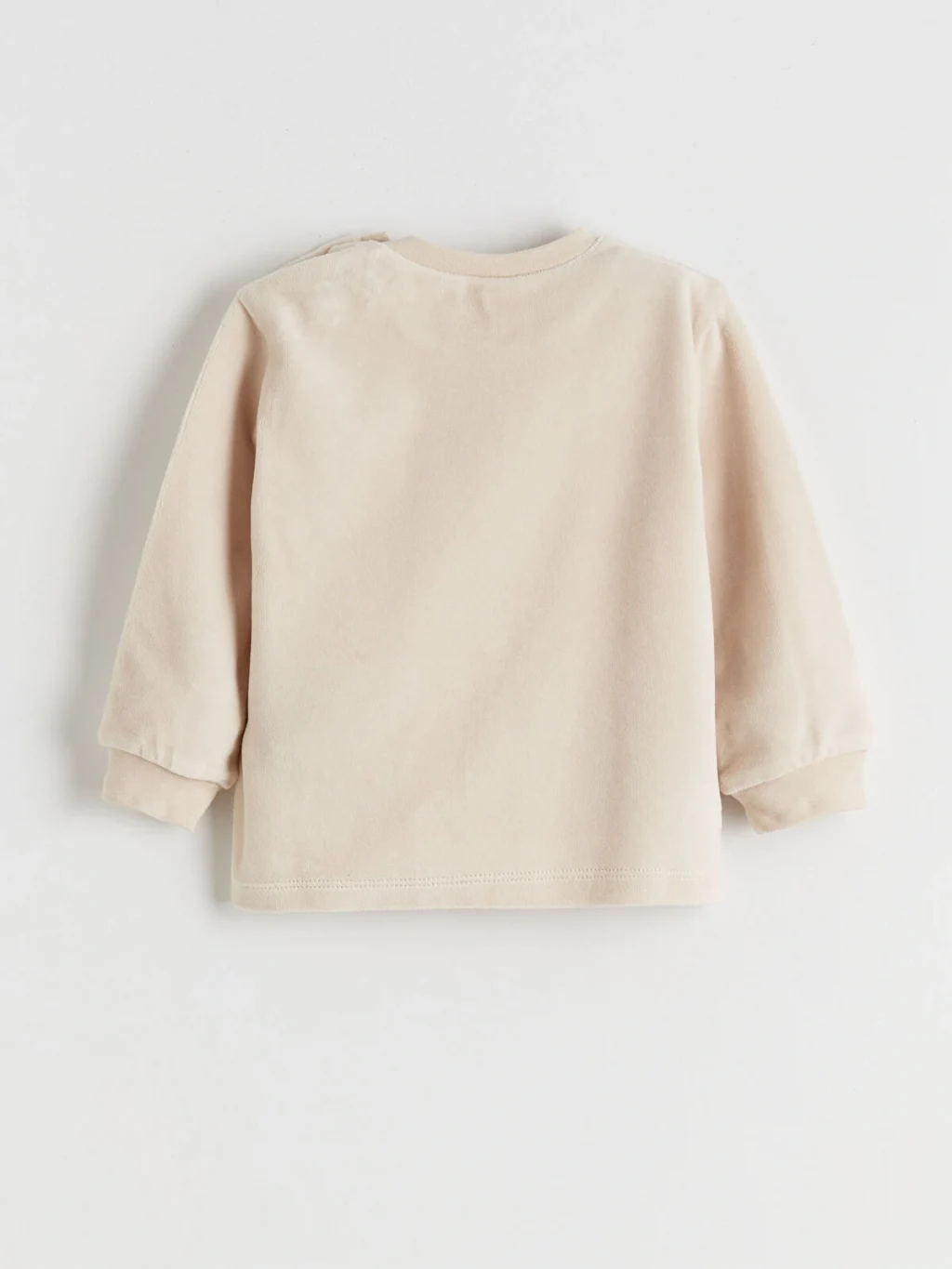Kız bebek takımı; bisiklet yaka, uzun kollu, önü fiyonk işlemeli üst ve pantolondan oluşur. Kol ve paça uçları ribanalıdır.