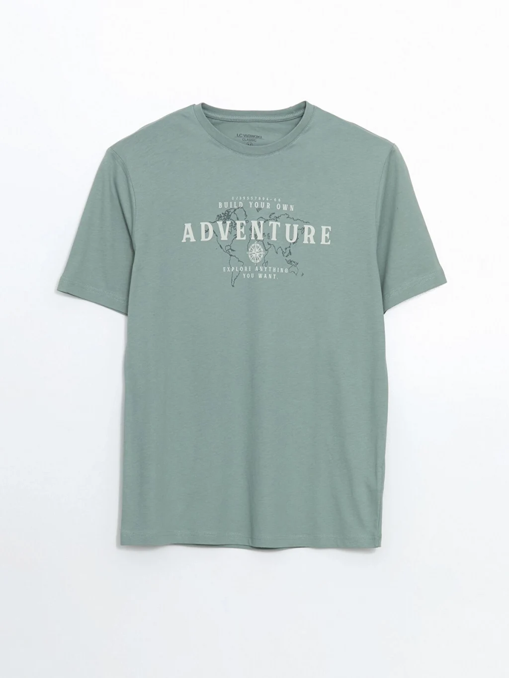 Standart kalıplı, bisiklet yaka ve kısa kollu erkek tişört, %100 pamuklu penye kumaştan üretilmiştir. Önü baskılıdır.