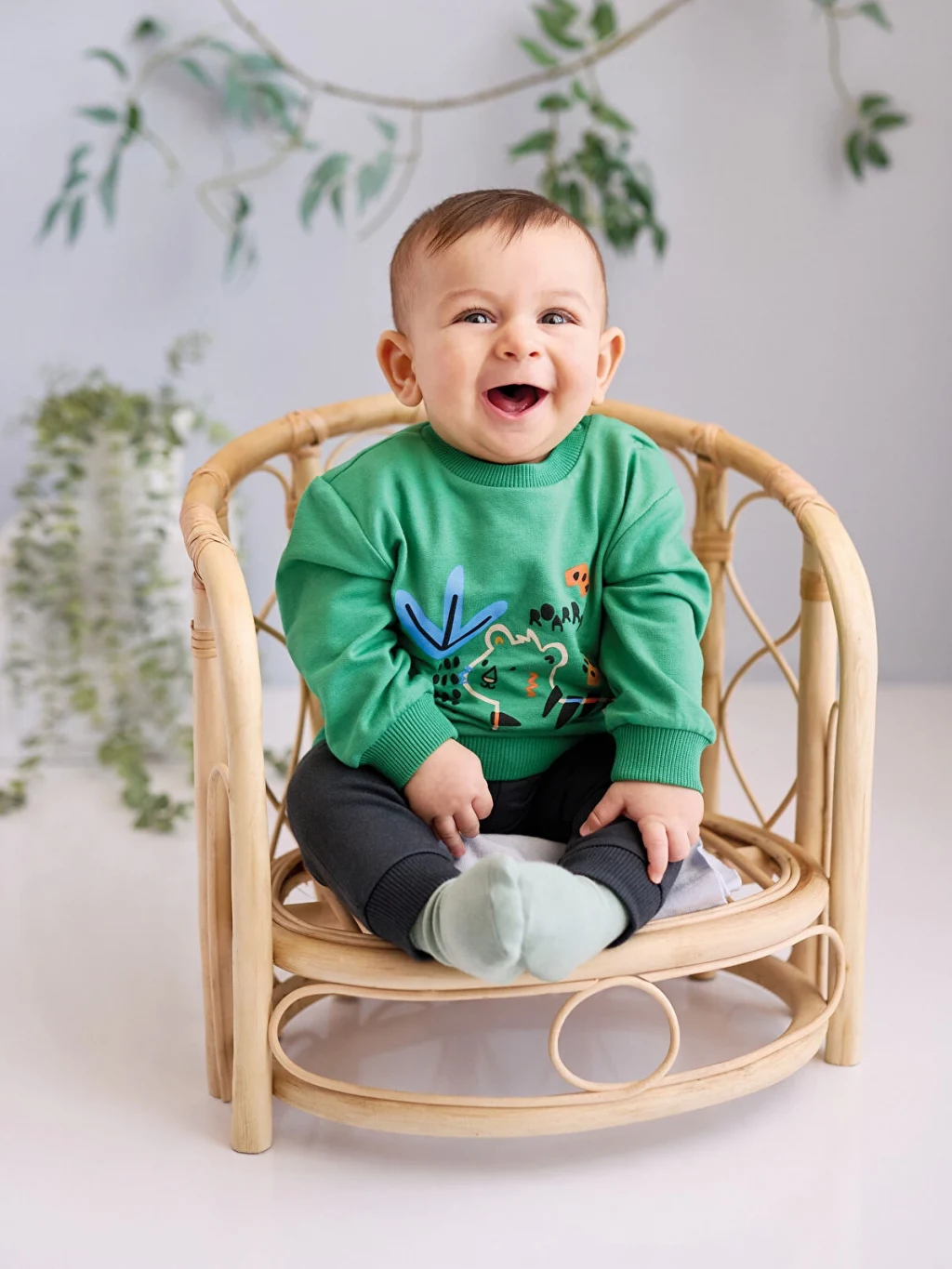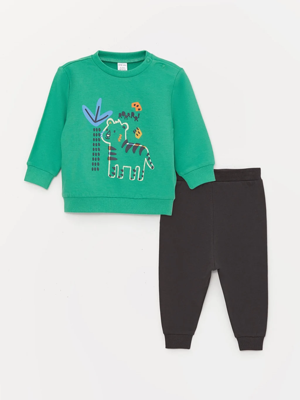 Bisiklet yaka sweatshirt ve eşofman altından oluşan 2'li takım, manşetleri, etek ucu ve paçaları ribanalı tasarımıyla şık bir görünüm sağlar. Bebeğinize gün boyu rahatlık ve konfor sunar. Bebeğinizi zararlı kimyasallardan korumak ve güvenliğini ön planda tutmak için ürünü örneklem yöntemiyle ekolojik testlerden geçiriyoruz. Üründe yutulabilir küçük parçalar, tehlikeli ipler ve keskin parçalar bulunmamaktadır.