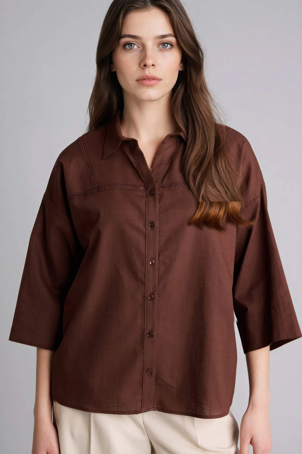 Defacto G3269AXBN539 Kahve Relax Fıt Gömlek Yaka Uzun Kollu Gömlek