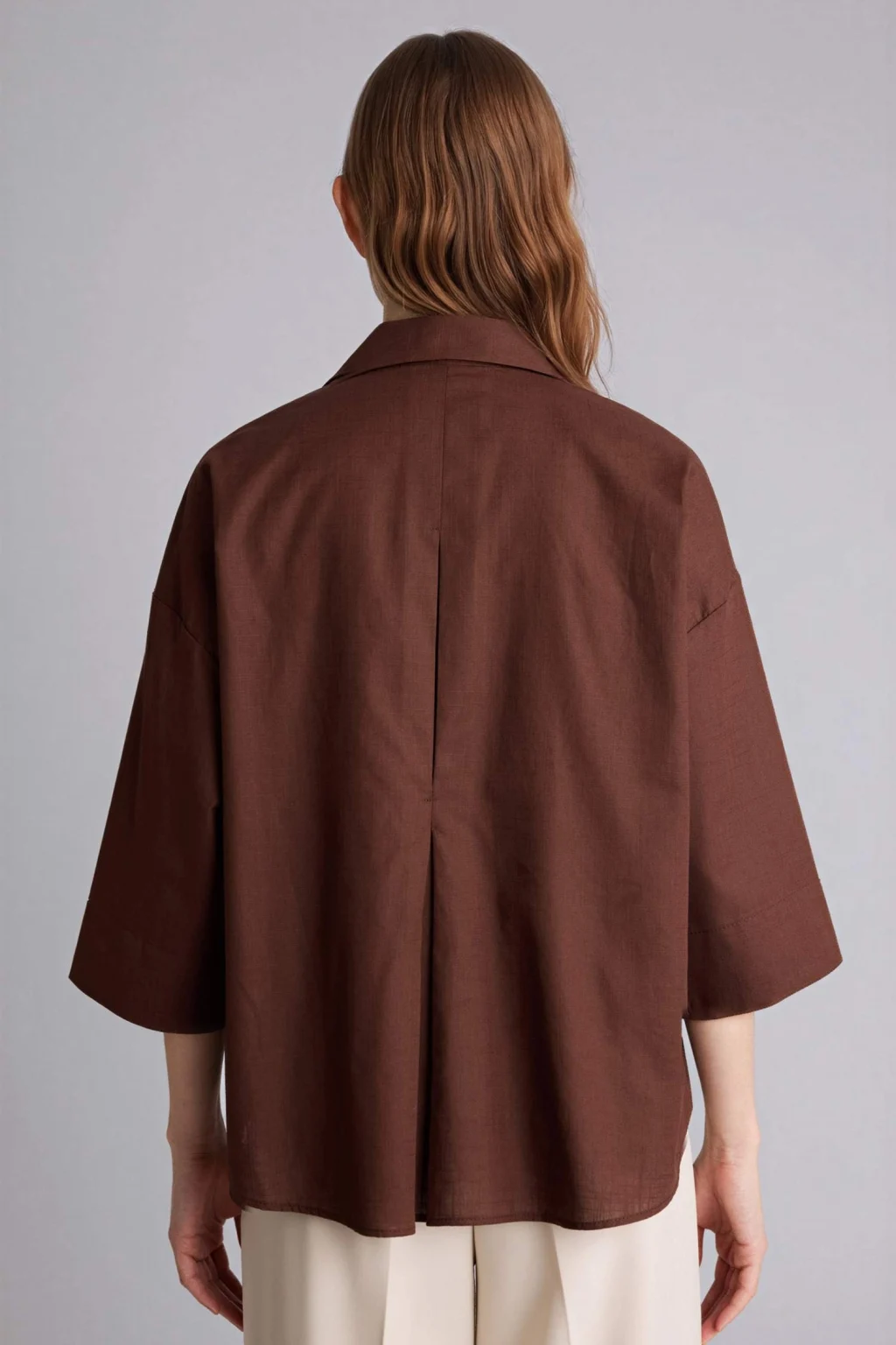 Defacto G9133AXBN539 Kahve Relax Fıt Krinkıl Kumaş Gömlek