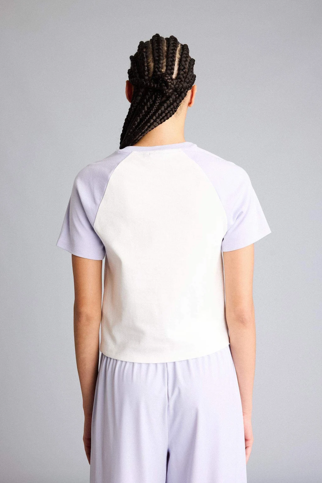 XSIDE Lila Bisiklet Yaka Düz Kısa Kollu Kadın Crop Tişört