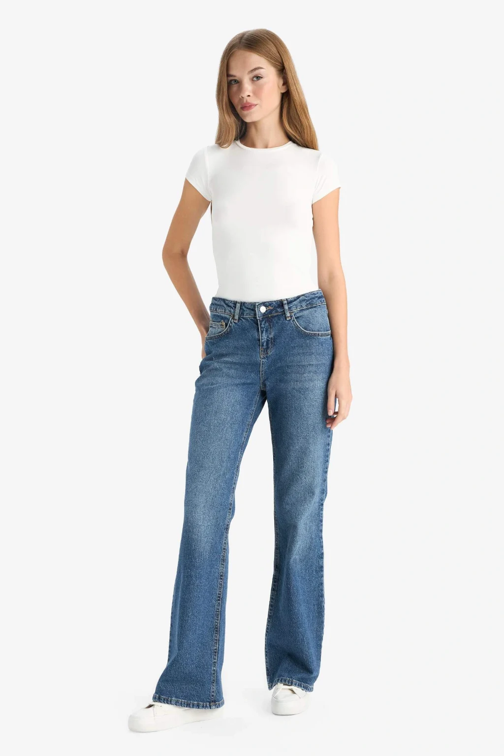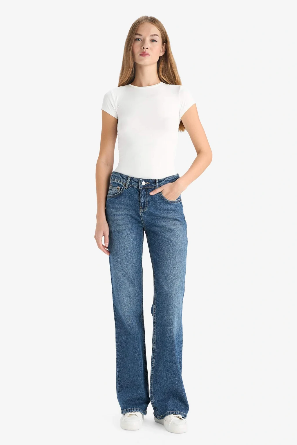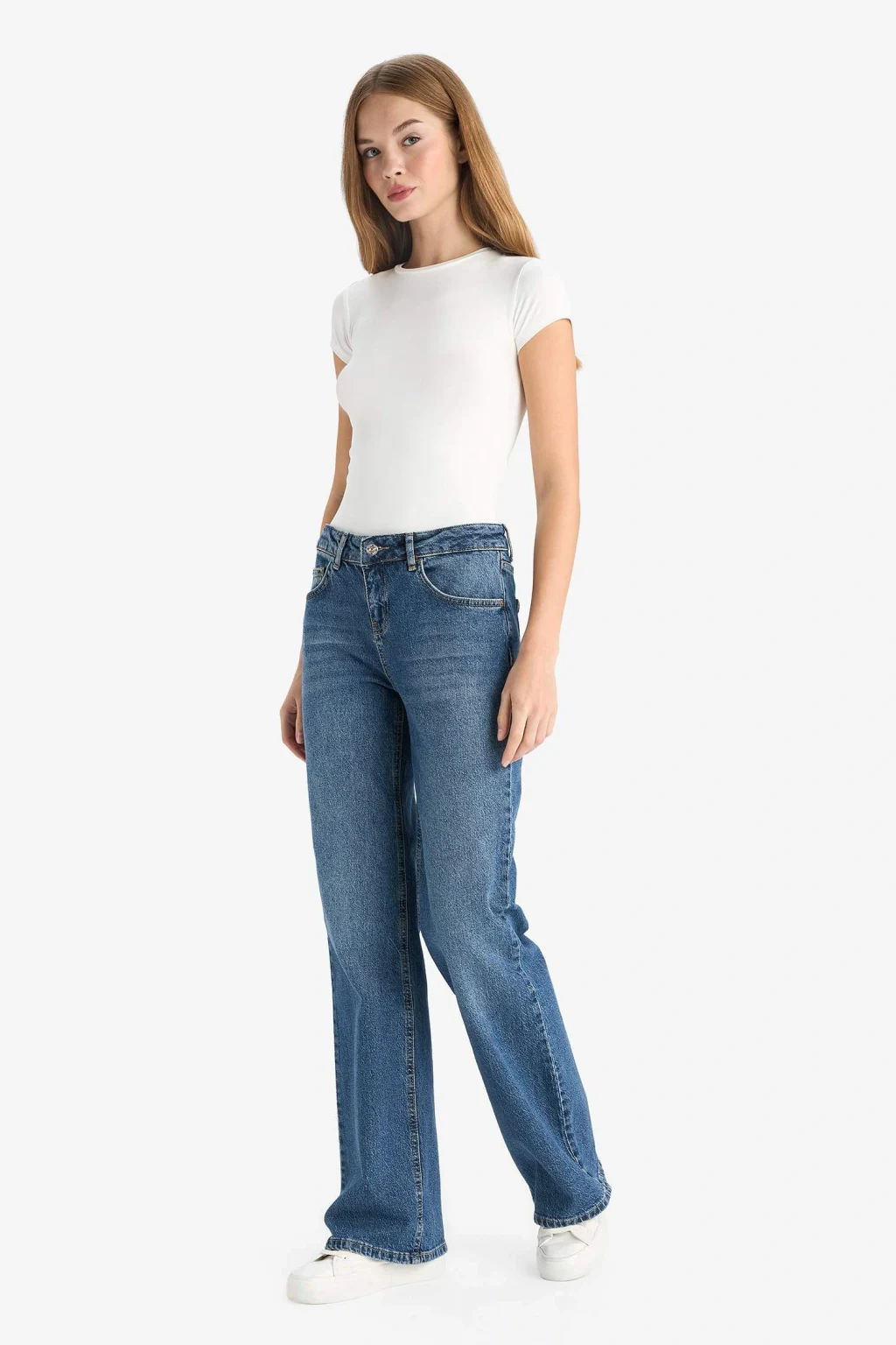 Düşük bel tasarımı ve yıkamalı dokusuyla şıklığı bir arada sunan uzun jean pantolon, rahat kesimiyle günlük kullanıma uygundur. Zamansız stilinizin vazgeçilmez parçası olacak.