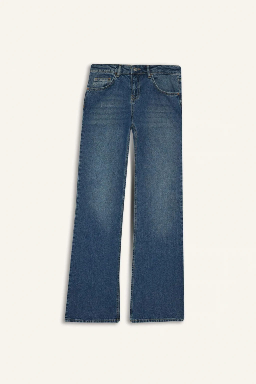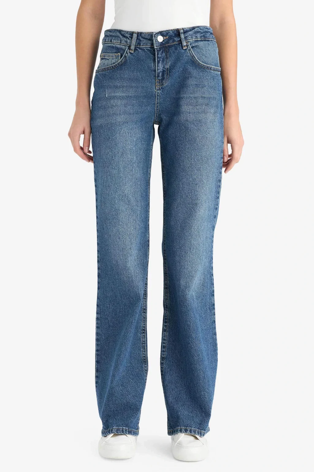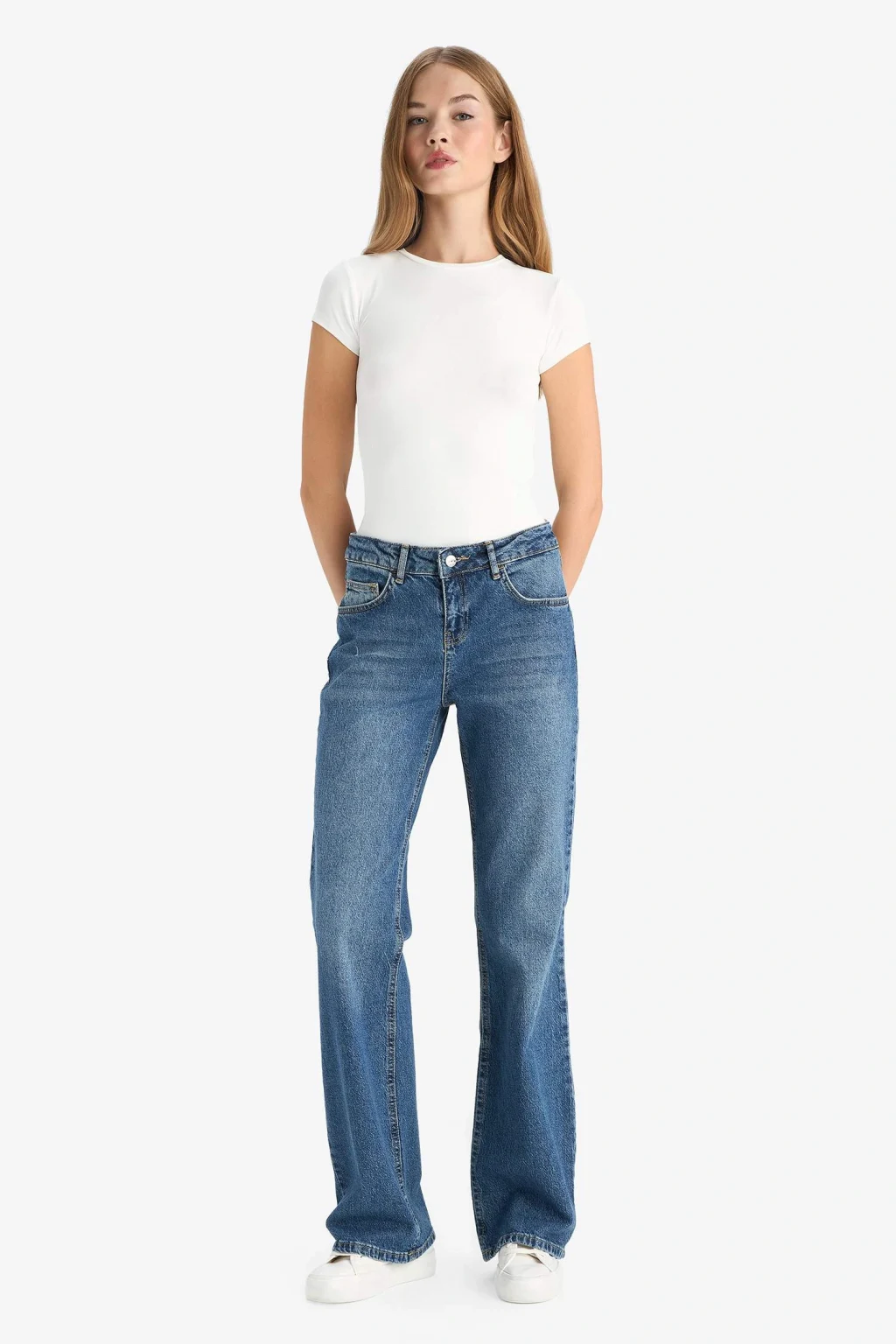 Düşük bel tasarımı ve yıkamalı dokusuyla şıklığı bir arada sunan uzun jean pantolon, rahat kesimiyle günlük kullanıma uygundur. Zamansız stilinizin vazgeçilmez parçası olacak.