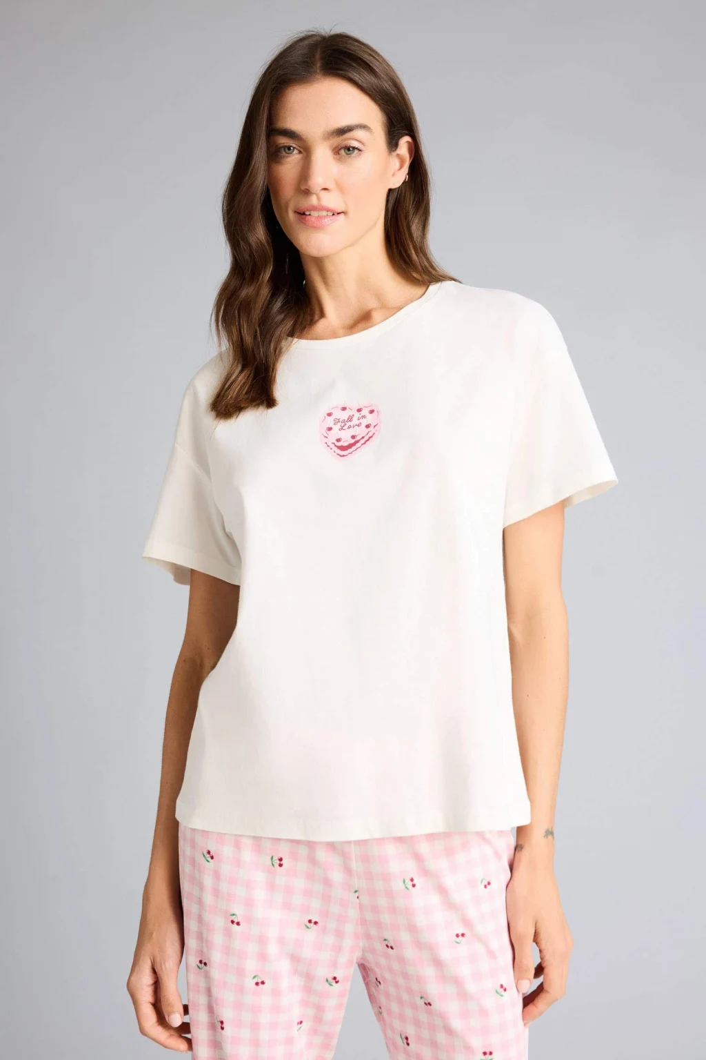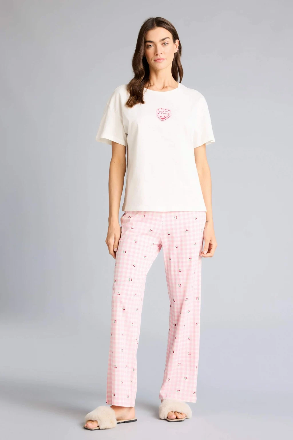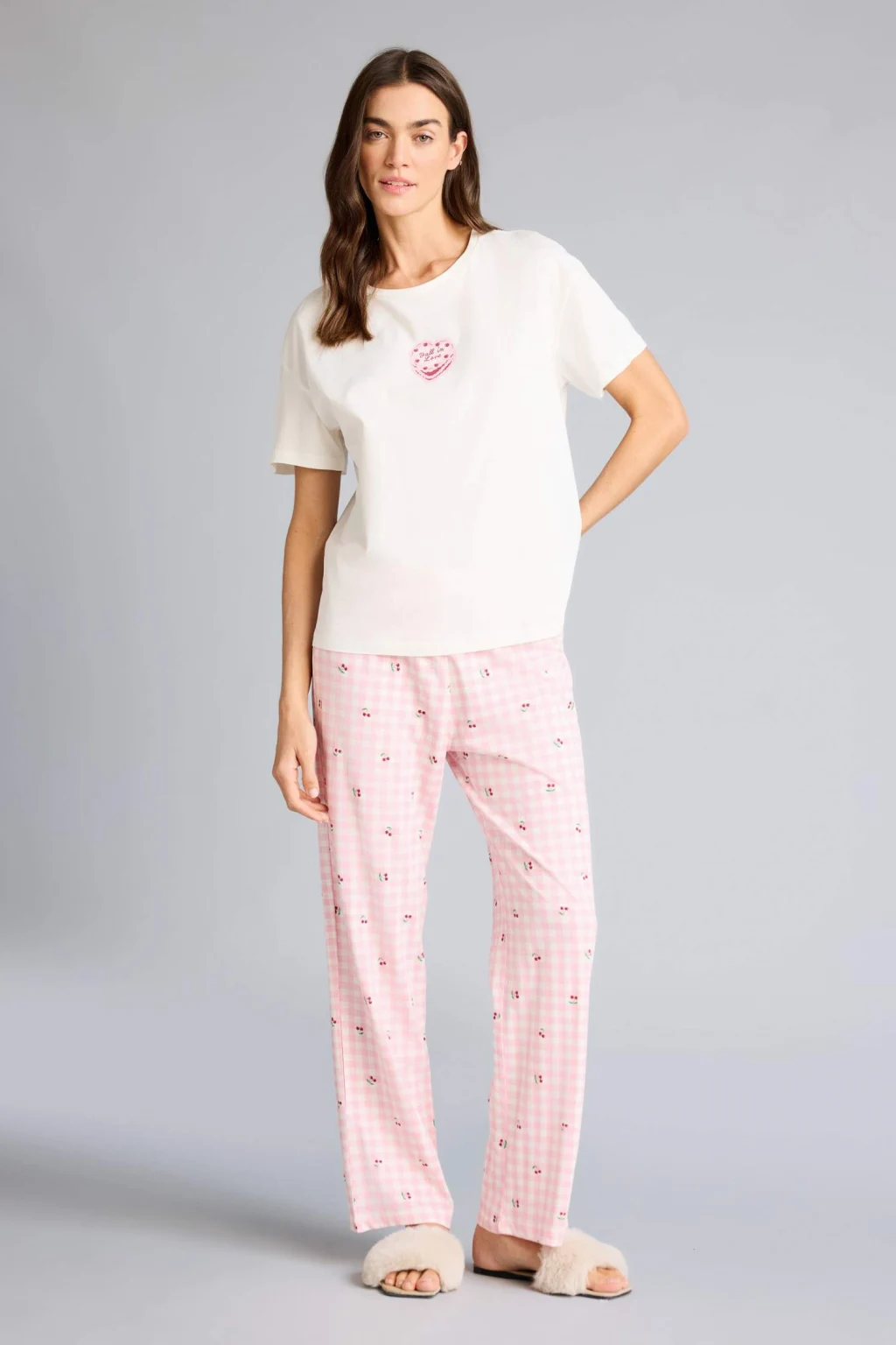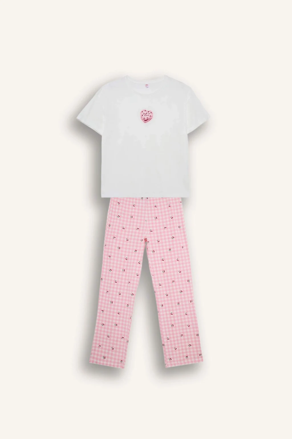 Regular fit kesime sahip baskılı pijama takımı, kısa kollu üstü ve desenli uzun altıyla rahat bir uyku deneyimi sunar. Yumuşak dokusu gün boyu konfor sağlarken şık baskılarıyla dikkat çeker. Ev giyimi için hem rahat hem kullanışlı bir seçenektir.