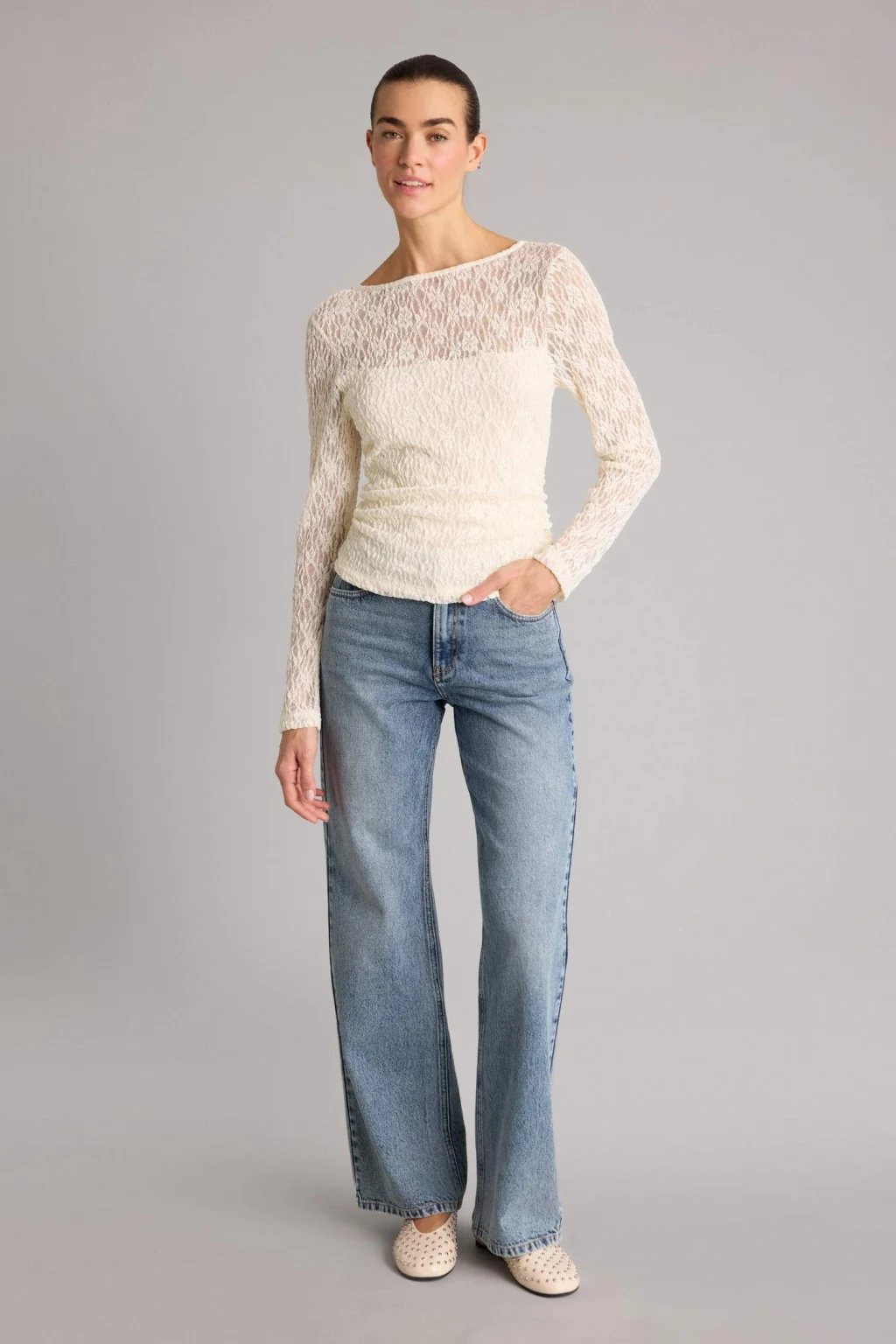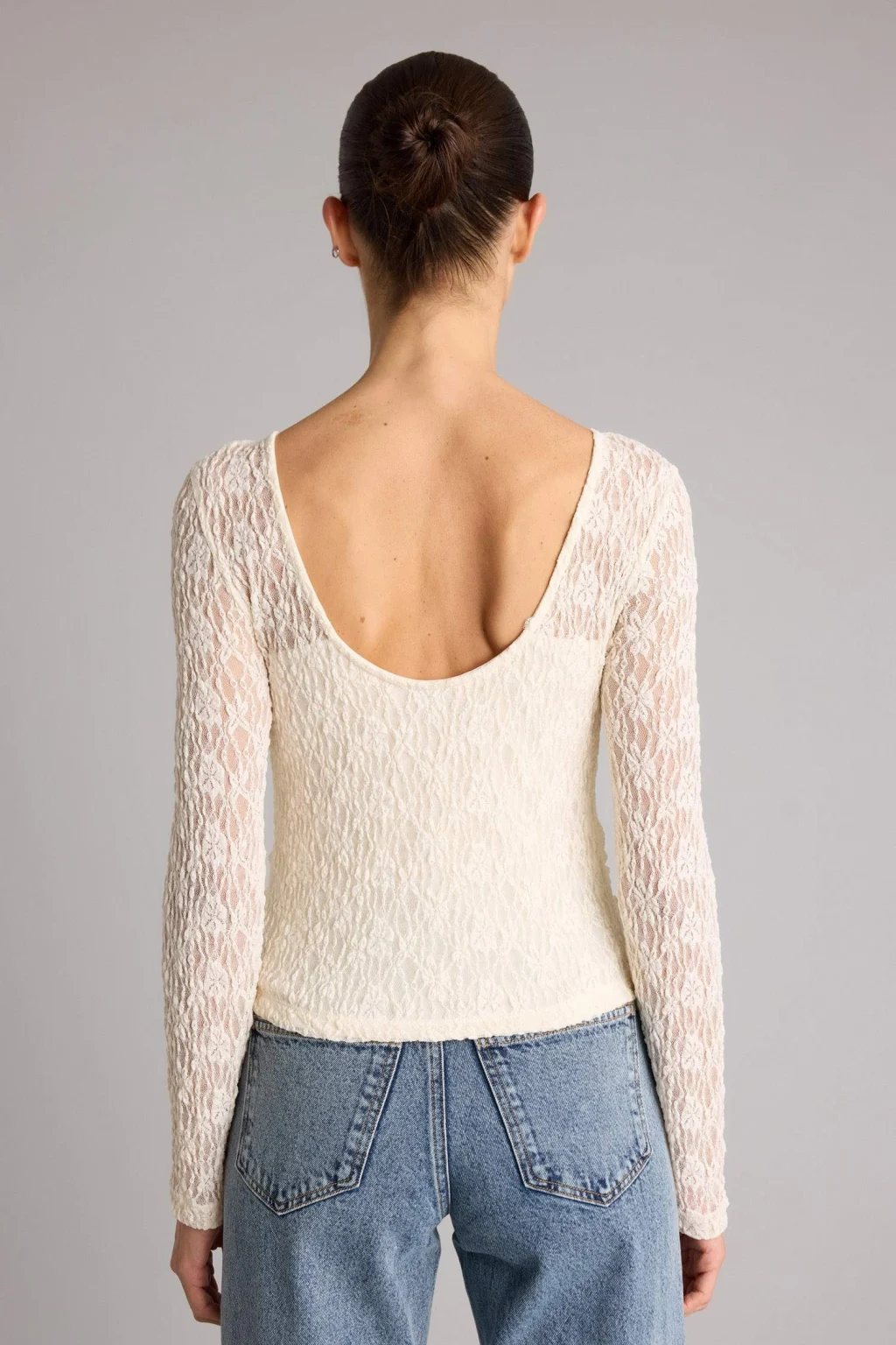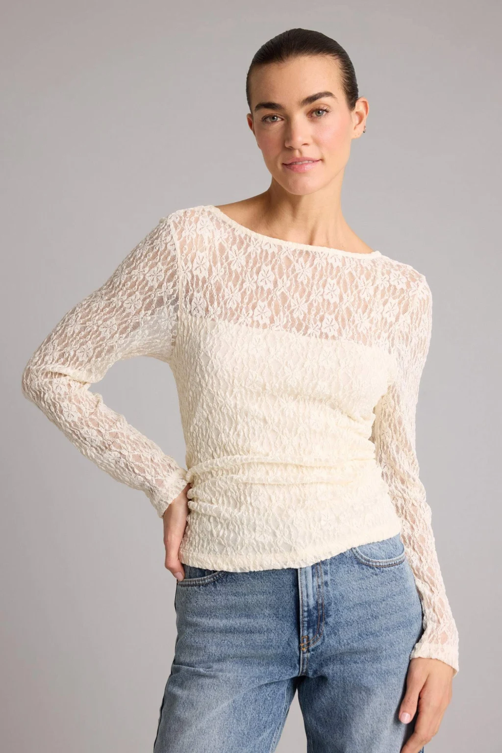 Defacto G1743AXBN334 Kahve Fıtted Kayık Yaka Dantel Uzun Kollu Bluz