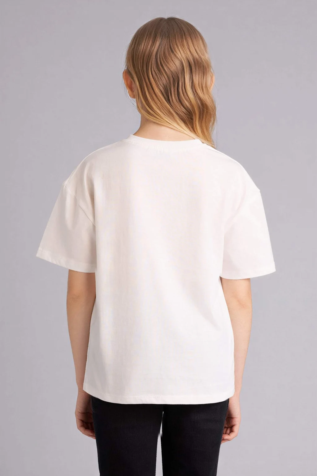 Bol kesimi ve oversize tasarımıyla modern bir stil sunan kız çocuk tişört, rahat kalıbıyla gün boyu konfor sağlar. Canlı ve eğlenceli baskı detayıyla kombinlere hareket katar.
