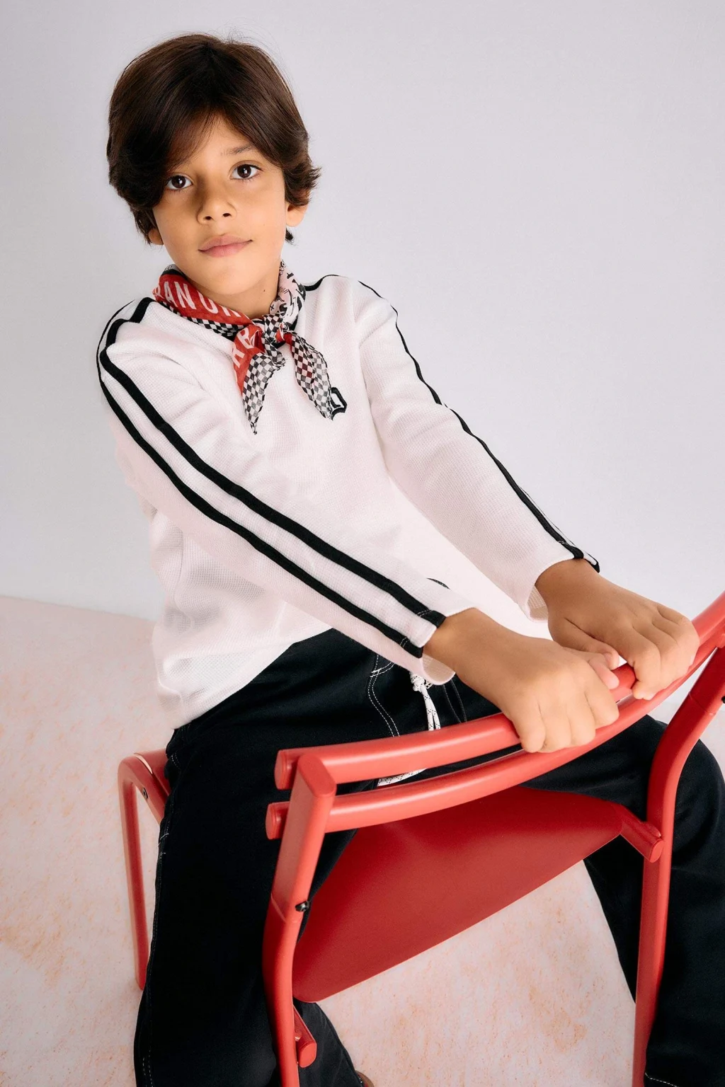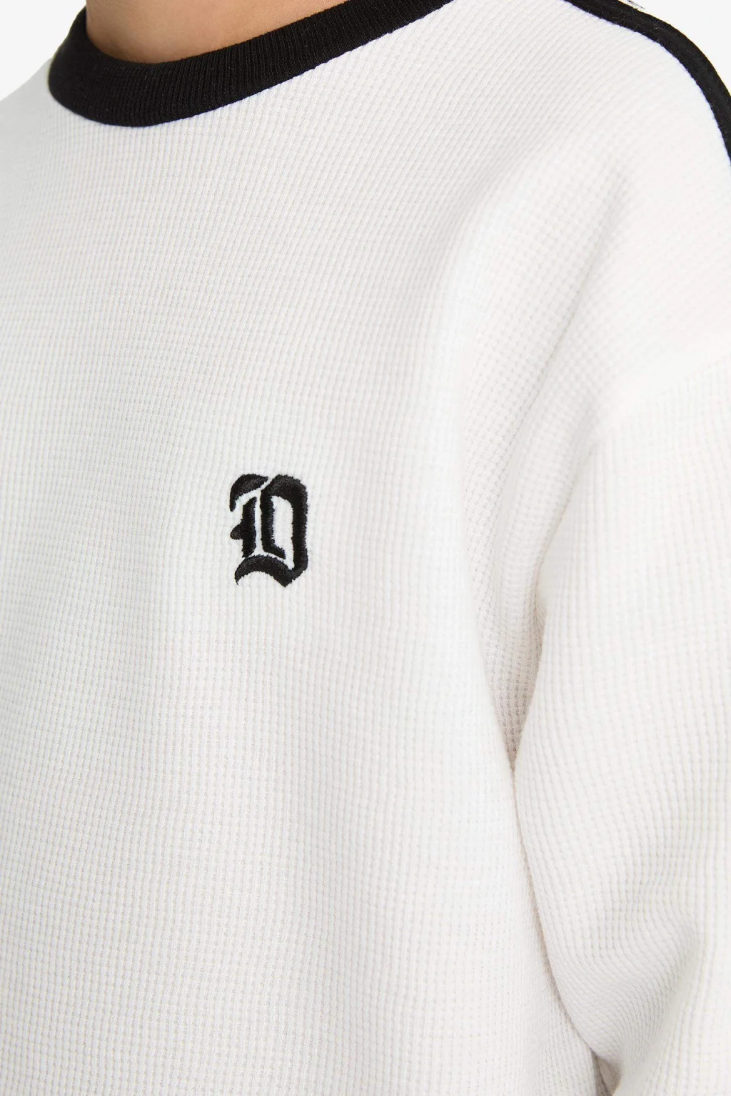 Rahat oversize kesimi ve yumuşak waffle kumaşıyla bu erkek çocuk tişörtü, hareket özgürlüğü ve konforu bir arada sunar. Bisiklet yaka ve eğlenceli aplike detaylarıyla çocukların favorisi olacak şık bir parça.