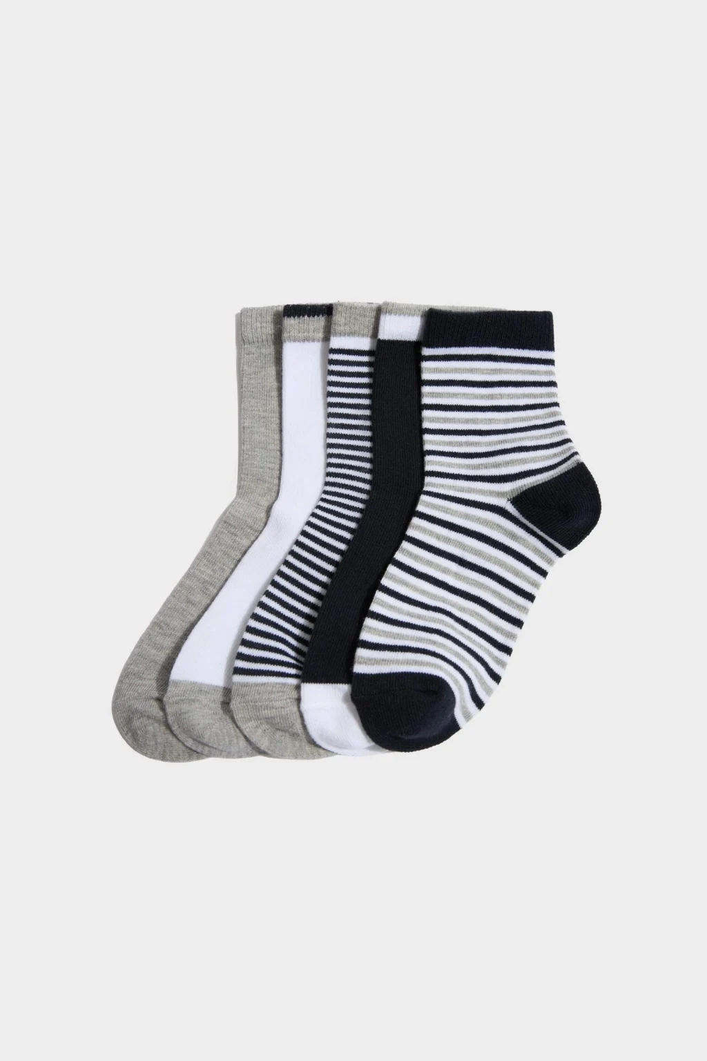 Çizgili 5’li Pamuklu Uzun Çorap Erkek Çocuk seti, gün boyu konfor sağlayan yumuşak ve nefes alabilen pamuklu dokusuyla miniklerin favorisi olacak.