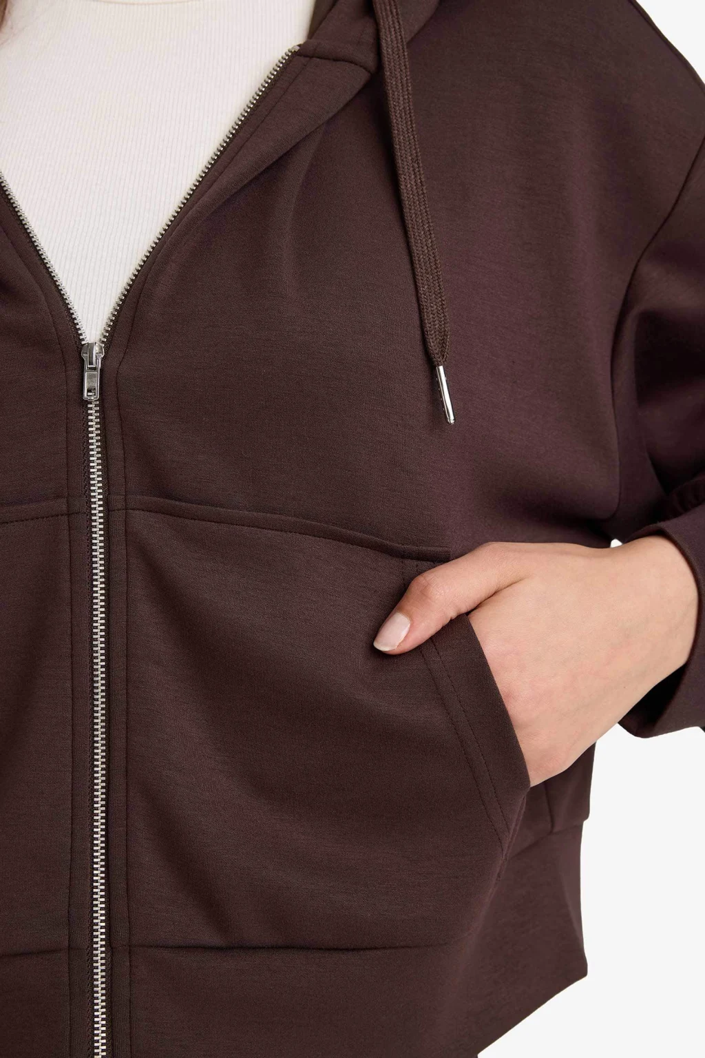 Loose fit kapüşonlu modal hırka, yumuşak ve hafif dokusuyla gün boyu rahatlık sunar. Rahat kesimi ve kapüşon detayıyla günlük ve spor kombinler için ideal bir tercihtir.