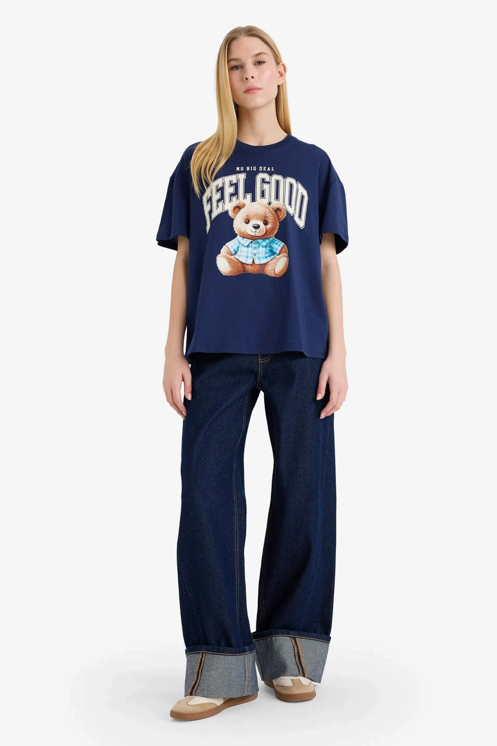 Oversize kesimi ve sevimli ayıcık baskısıyla öne çıkan tişört, rahat ve şık bir günlük stil sunar. Yumuşak ve esnek dokusu sayesinde gün boyu konforlu bir kullanım sağlar.