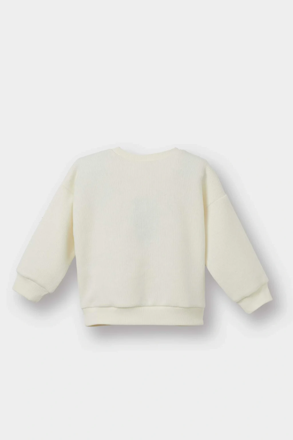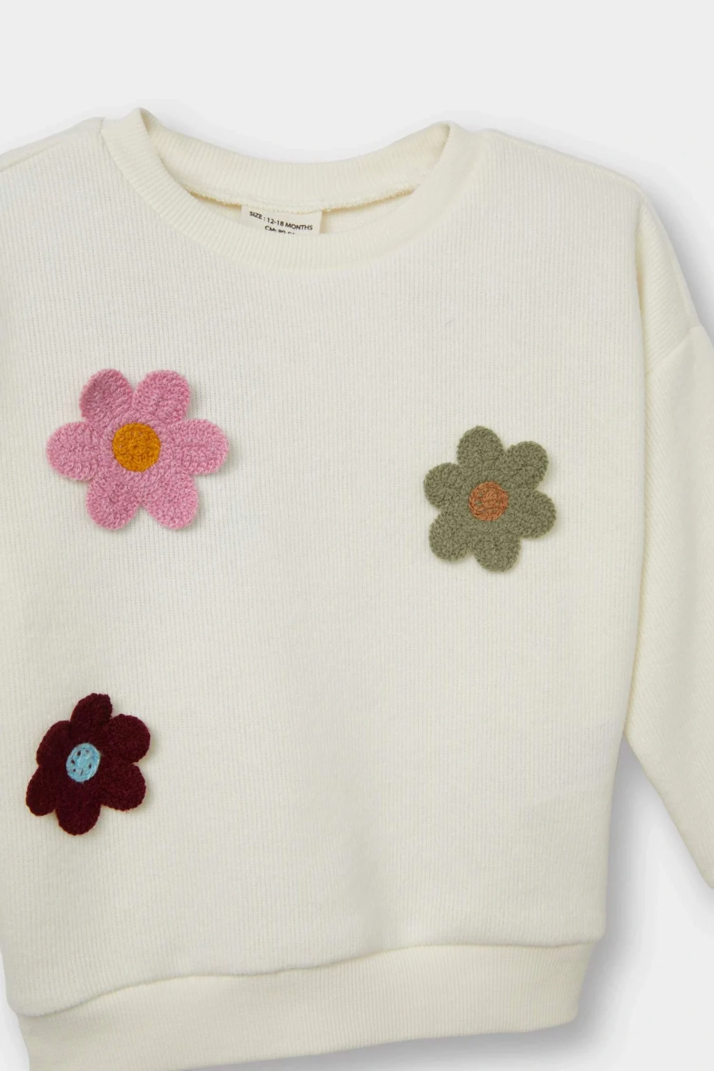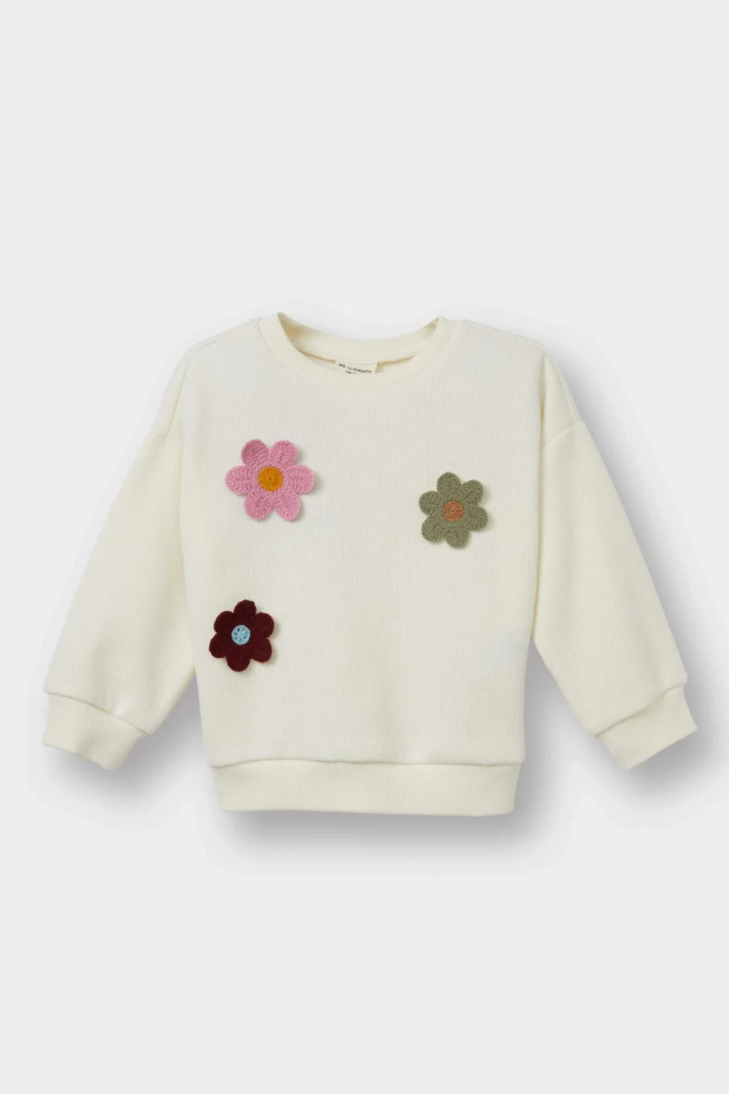 Bisiklet yaka tasarımı ve şık çiçek desenleriyle bu sweatshirt, kız bebeklere rahat ve sevimli bir stil sunar. Yumuşak kumaşı sayesinde gün boyu konfor sağlar.