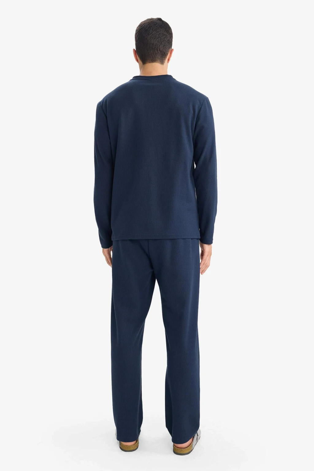 Yumuşacık dokusuyla konforu ön plana çıkaran Regular Fit uzun kollu waffle pijama takımı, evde geçirdiğiniz keyifli anların vazgeçilmezi olacak. Nefes alan kumaşı ve klasik kesimiyle rahatlığı gün boyu hissettirir.