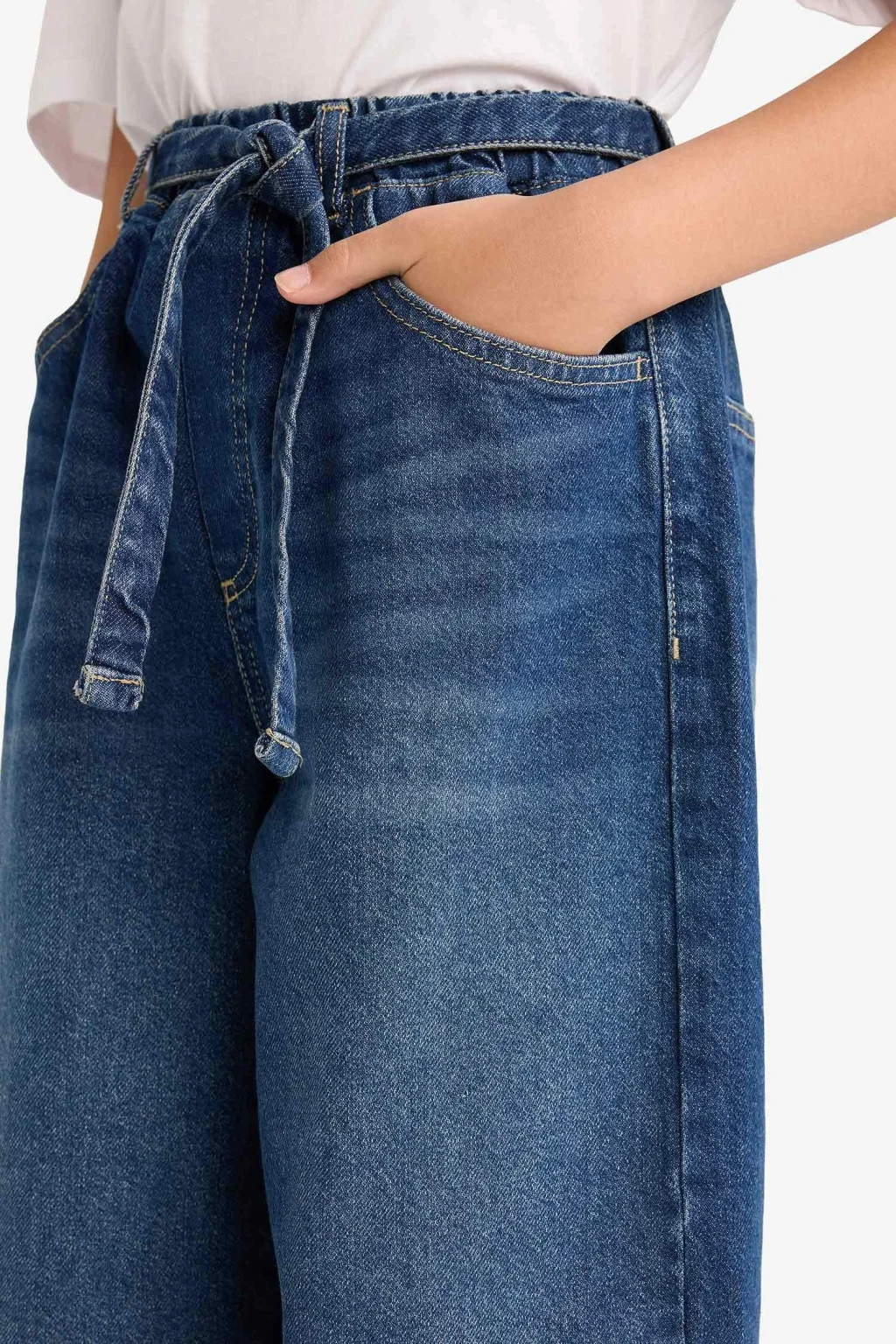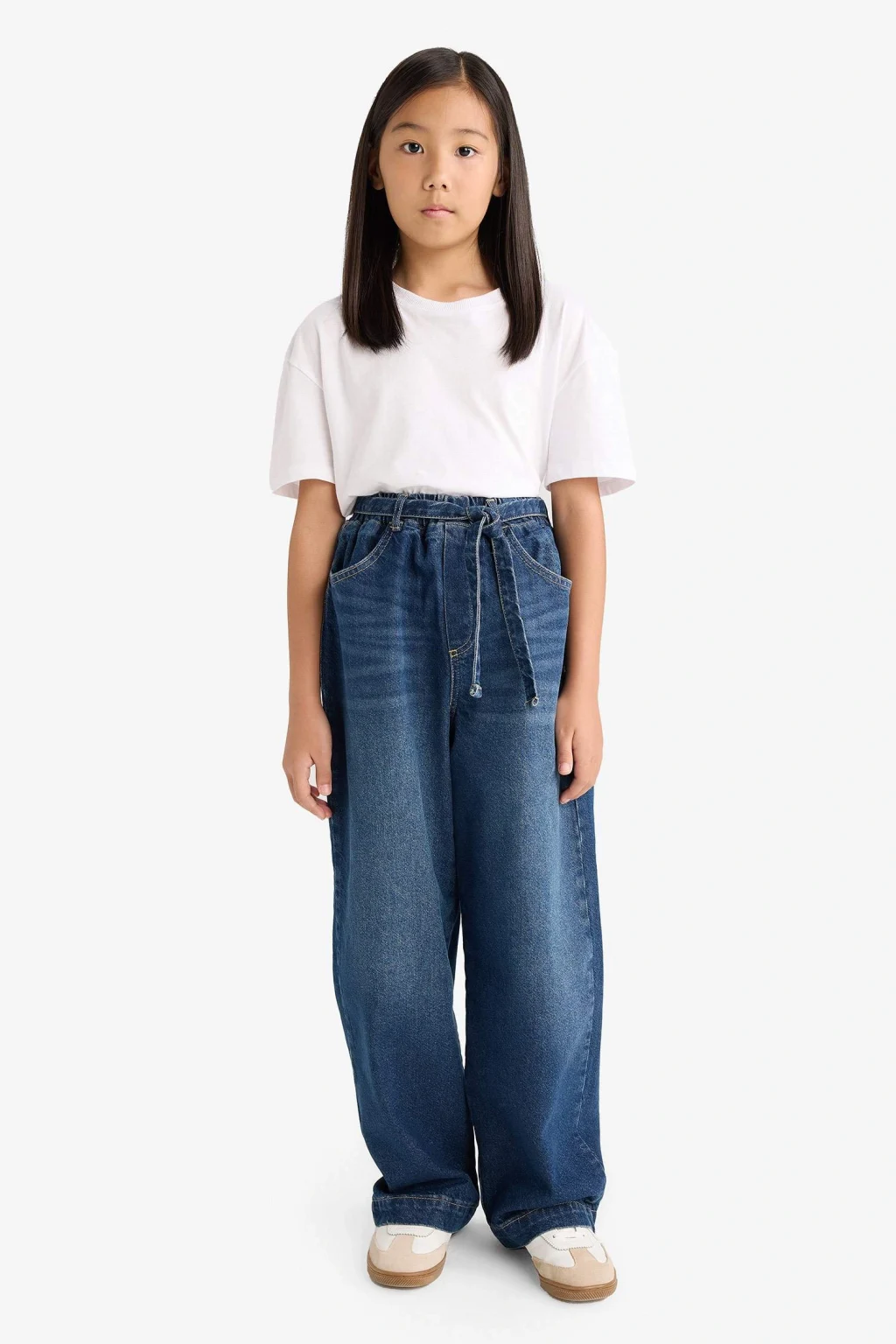 Geniş ve rahat kalıbıyla öne çıkan bu wide baggy fit jean pantolon, kız çocukları için modern ve konforlu bir stil sunar. Beli lastikli yapısı sayesinde kolay giyilir ve gün boyu rahatlık sağlar.
