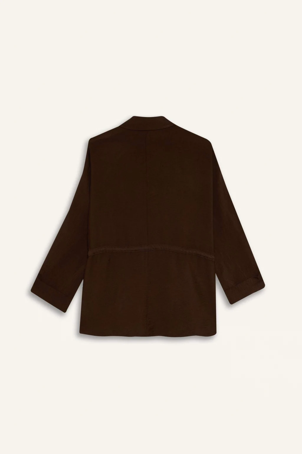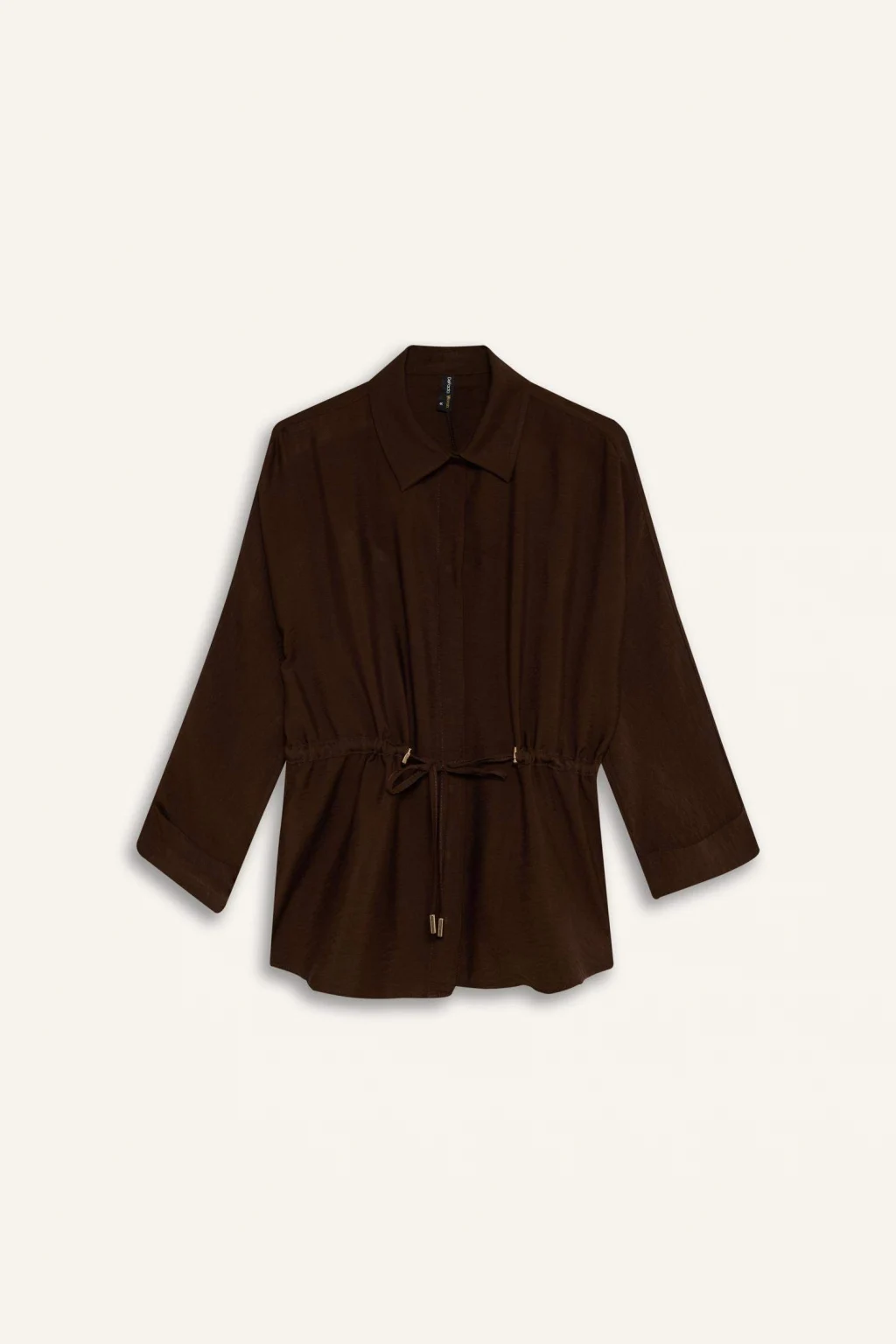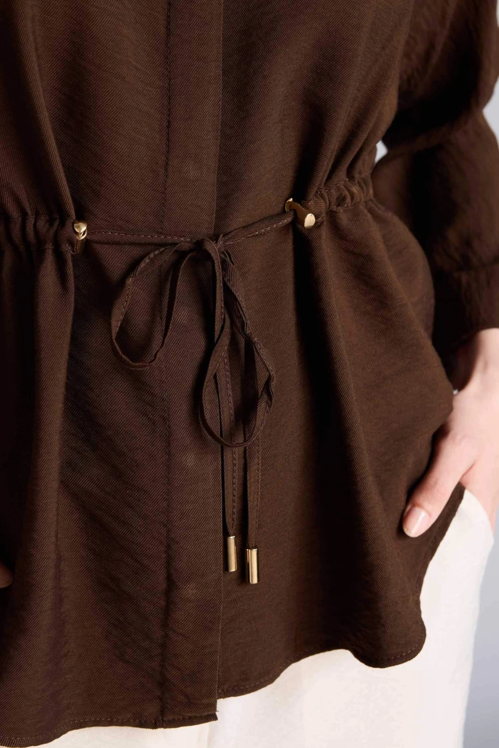 Defacto G9803AXBN267 Kahve Oversıze Gömlek Yaka Poplin Uzun Kollu Gömlek