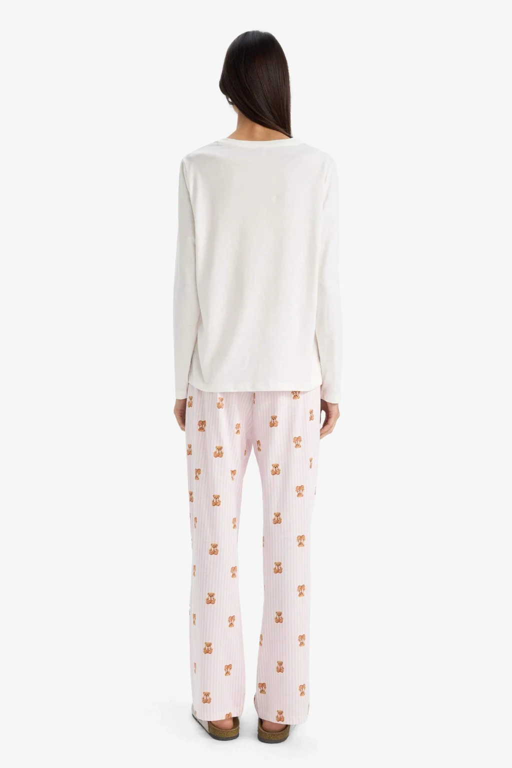 Yumuşak ve rahat kumaşıyla bu regular fit pijama takımı, gün boyu konforlu bir uyku deneyimi sunar. Uzun kollu üstteki sevimli ayı baskısı ve desenli uzun alt tasarımıyla şık ve eğlenceli bir görünüm sağlar.