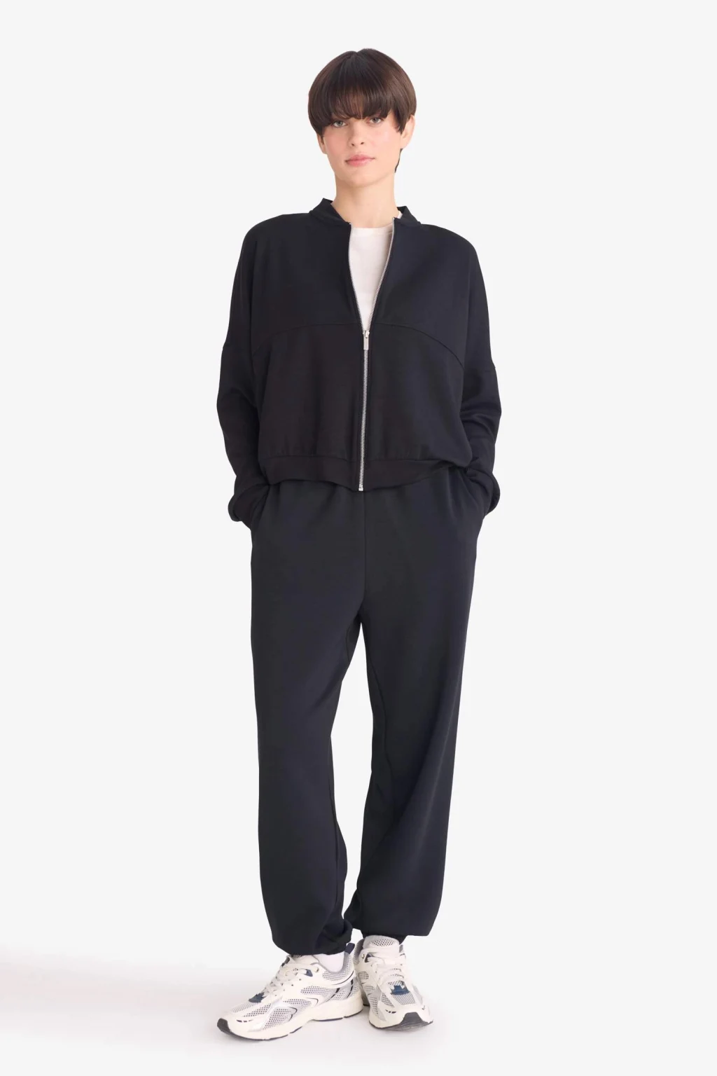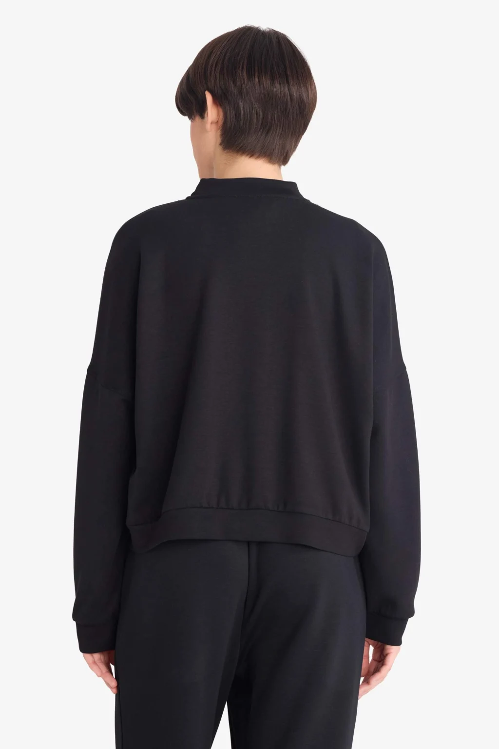 Kolej yaka ve fermuarlı tasarımıyla öne çıkan basic düz bomber hırka, rahat kesimiyle gün boyu konfor sağlar. Sade ve modern görünümüyle her kombine uyum sağlar.