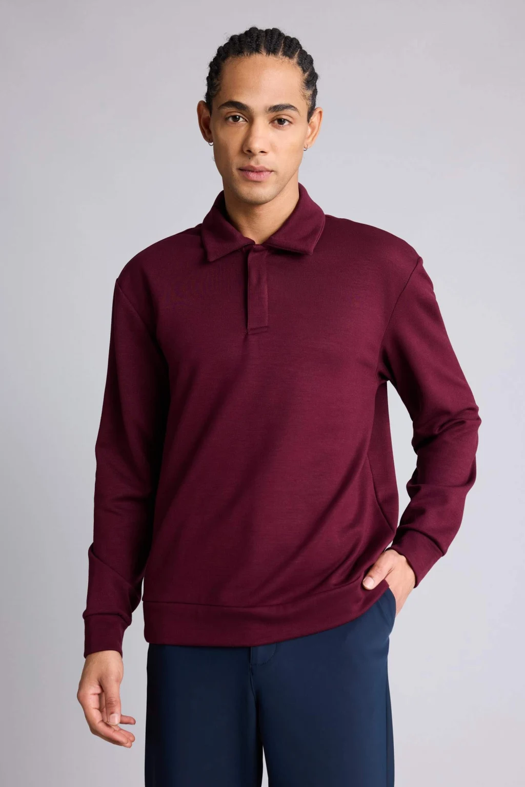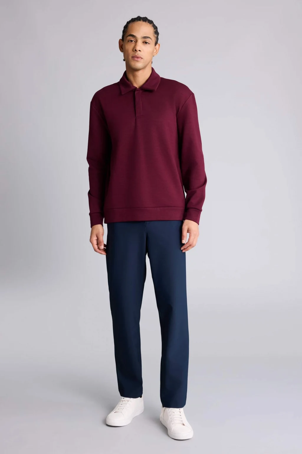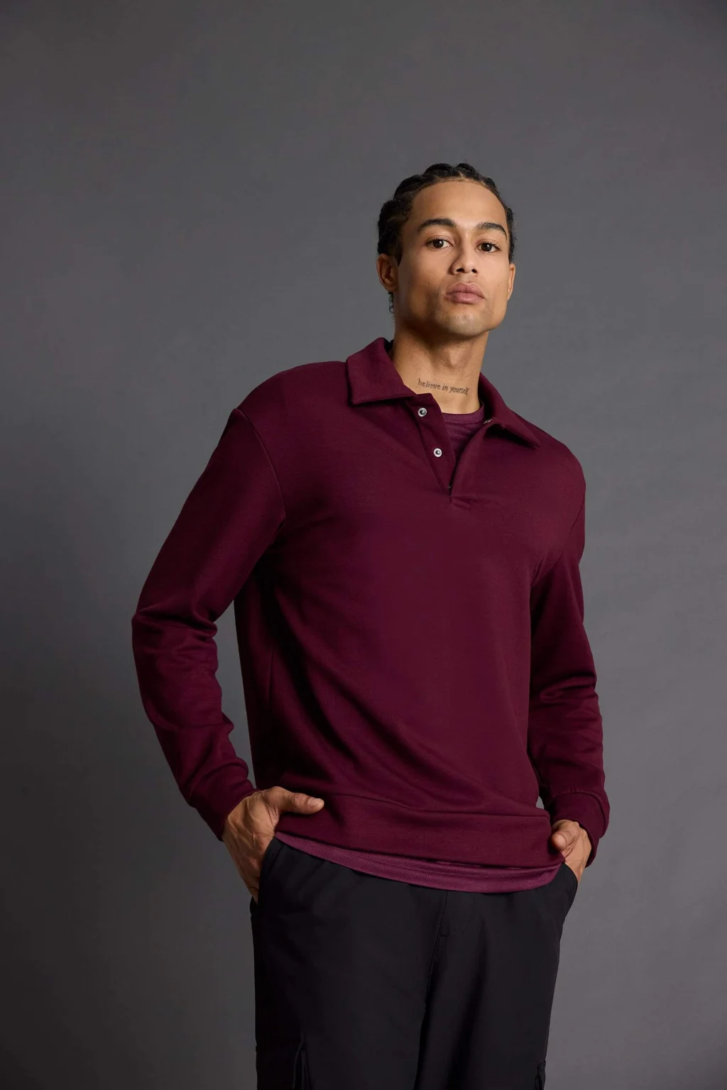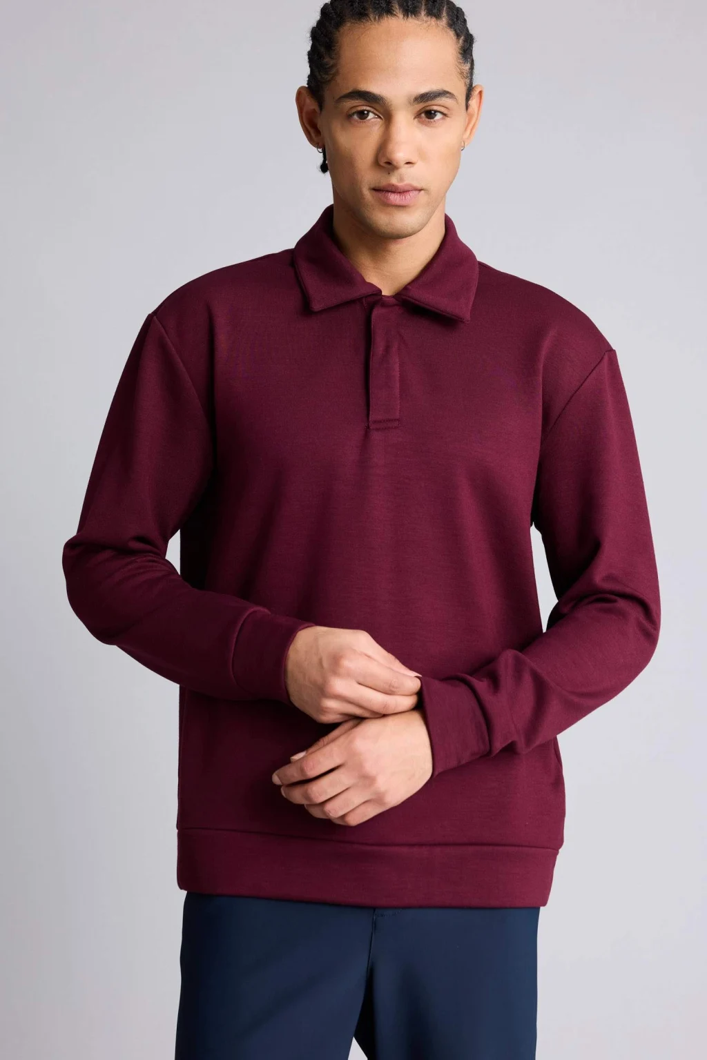 Yumuşak modal kumaşı ve klasik polo yaka tasarımıyla bu sporcu sweatshirt, gün boyu konfor ve şıklık sunar. Standart fit kesimi sayesinde hareket özgürlüğünü destekler ve günlük kullanıma uygundur.