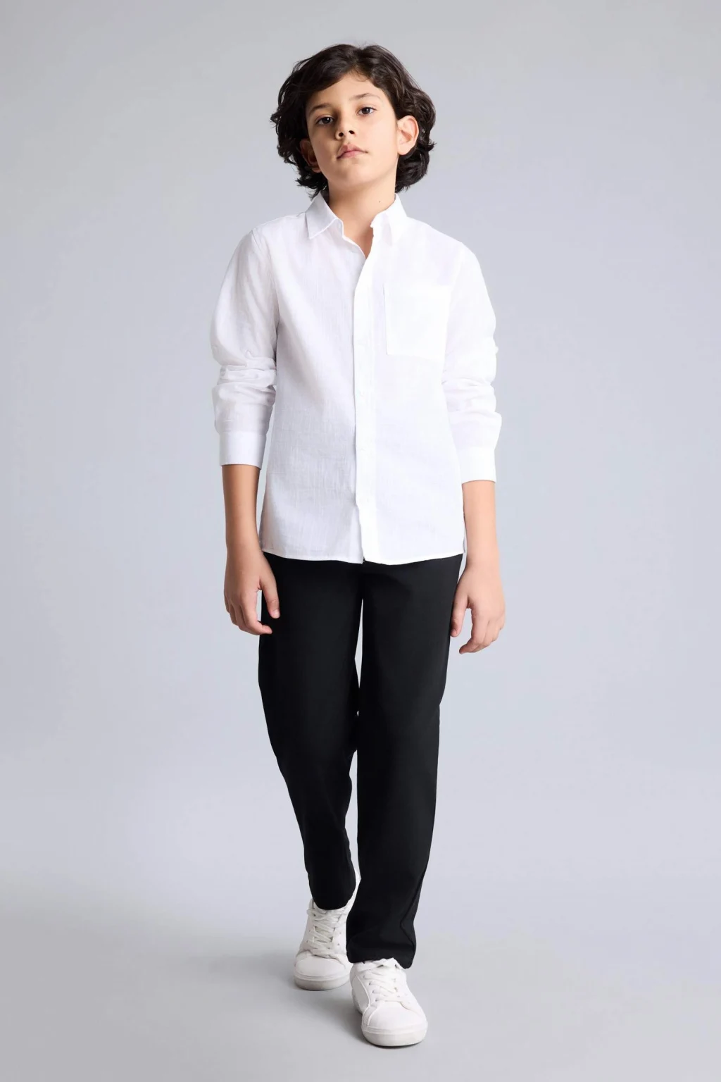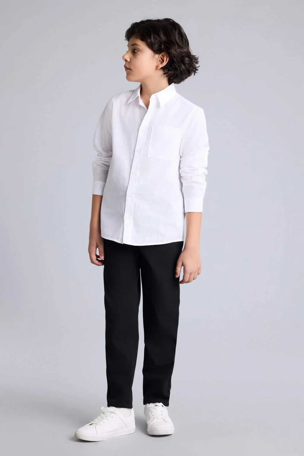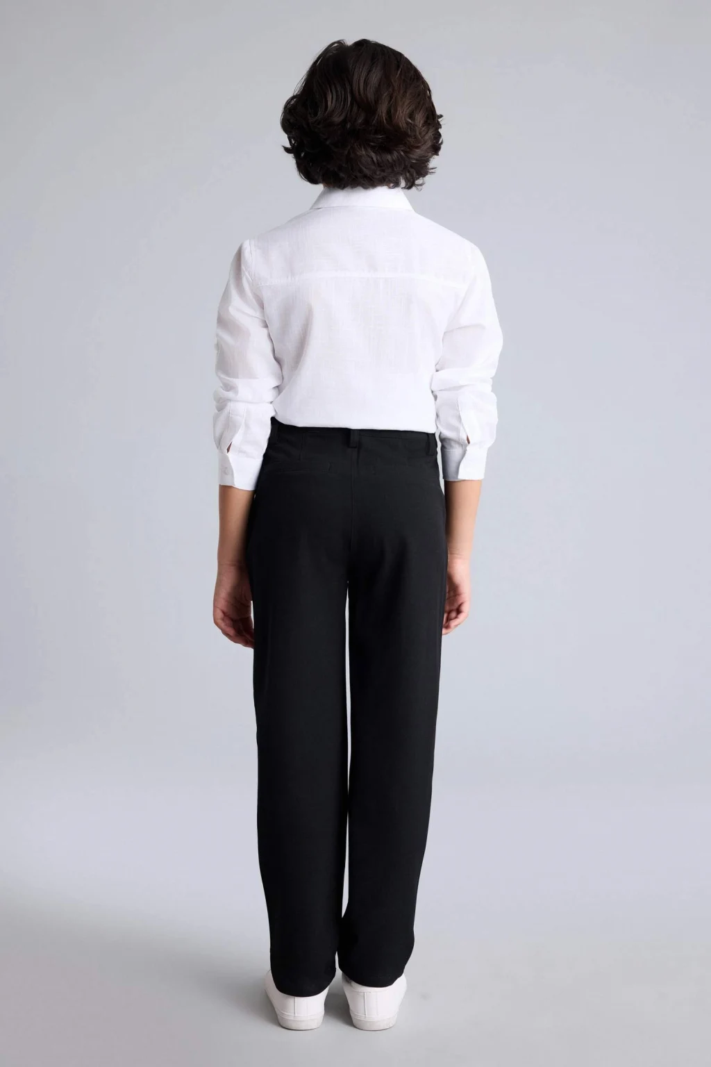 Her yöne esneyen kumaşıyla tasarlanan erkek çocuk pantolon, hareketi kolaylaştıran rahat bir kullanım sunar. Dayanıklı ve şık tasarımıyla günlük kombinlere uyum sağlar.