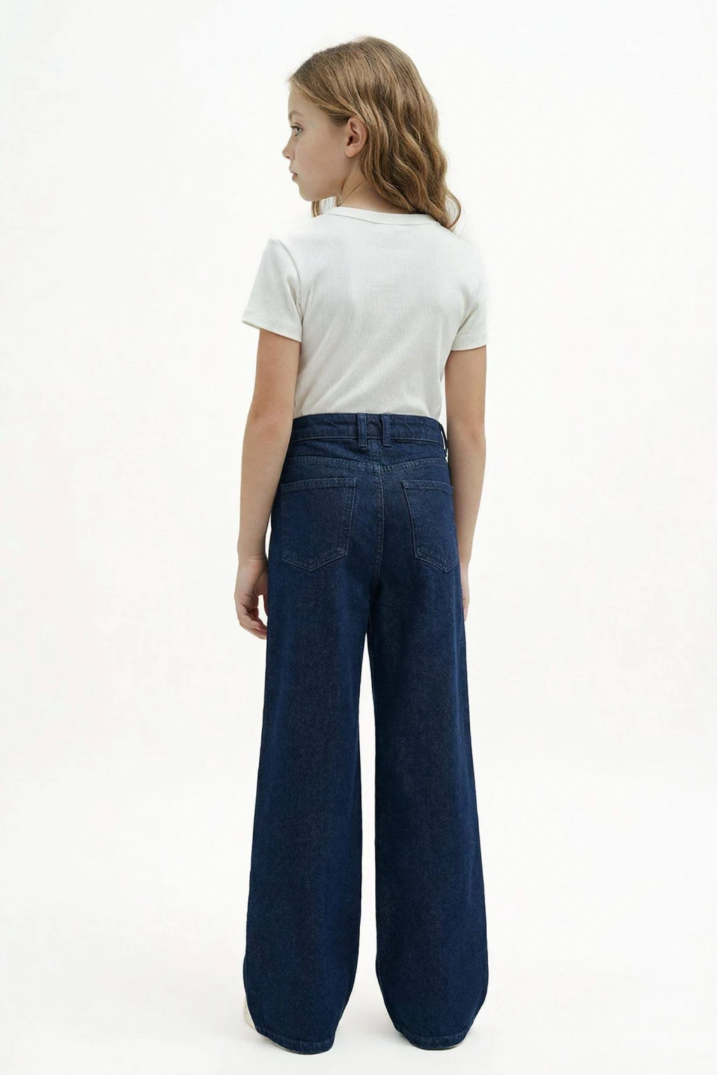 90’lar esintili wide leg jean pantolon, kız çocuklar için rahat ve şık bir kullanım sunar. Gün boyu konfor sağlarken, geniş paça tasarımı hareket özgürlüğünü destekler. Günlük kombinler ve retro tarzlar için ideal bir parçadır.