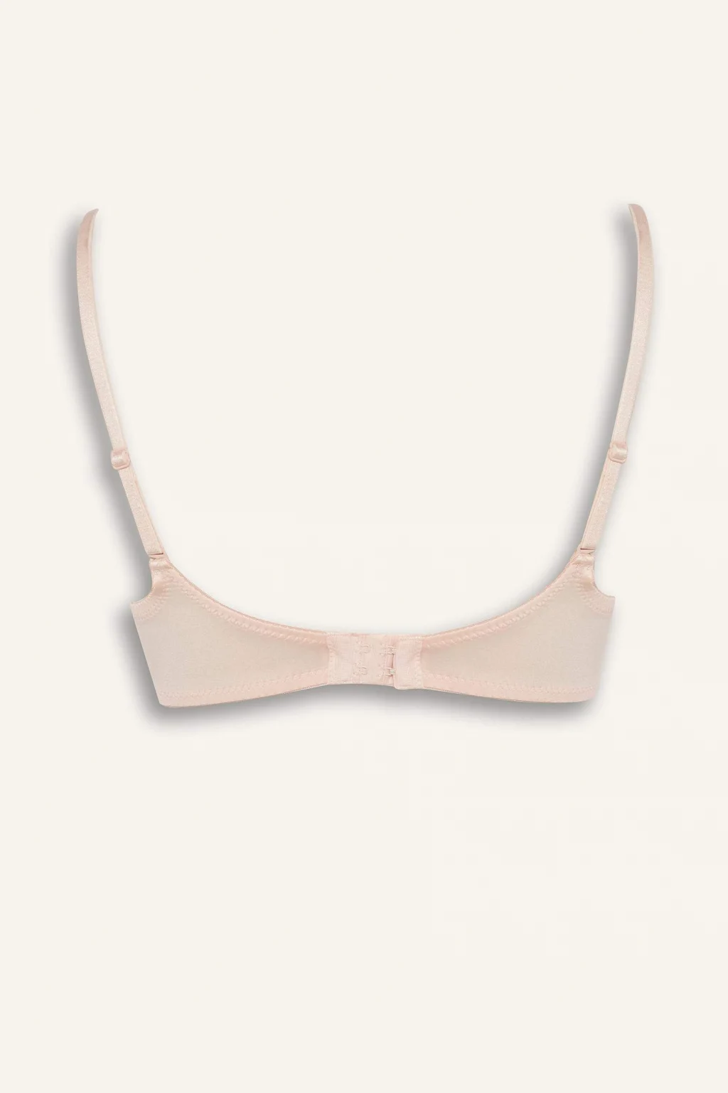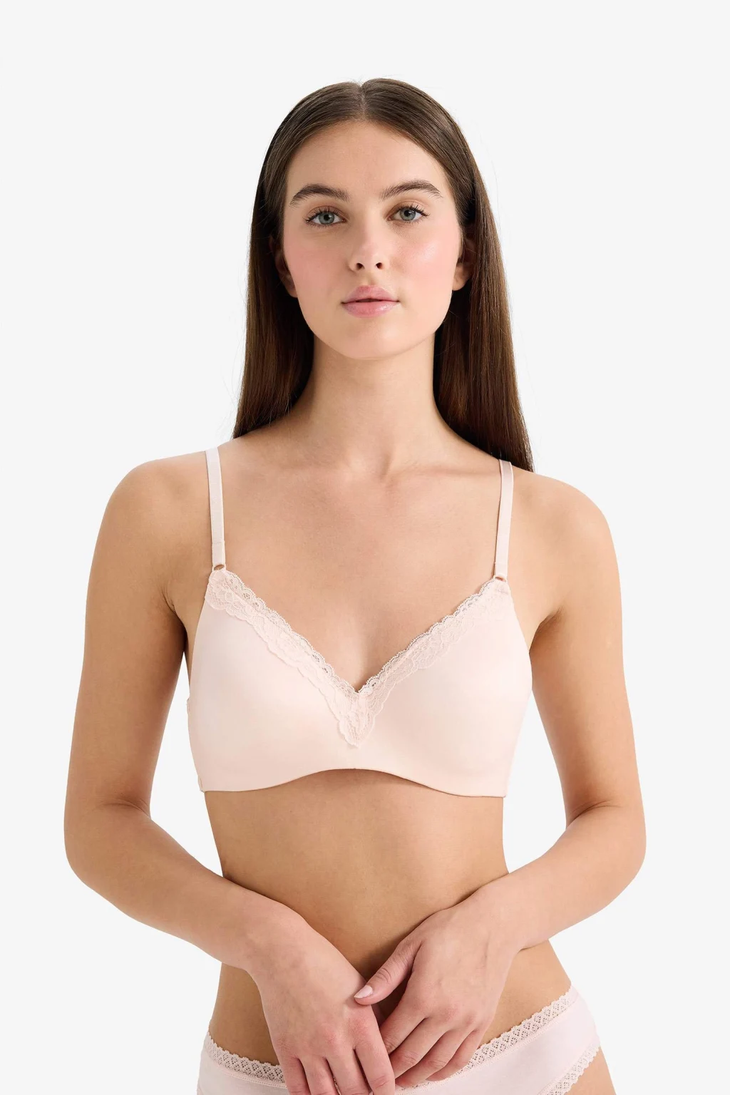 Dantel Detaylı Saten Kaplı Pedli Balensiz Tişört Bra, yumuşak saten kaplaması ve zarif dantel dokunuşlarıyla hem şık hem de konforlu bir kullanım sunar. Balensiz yapısı doğal bir rahatlık sağlarken, pedli formu günlük kullanımda ideal bir destek verir.