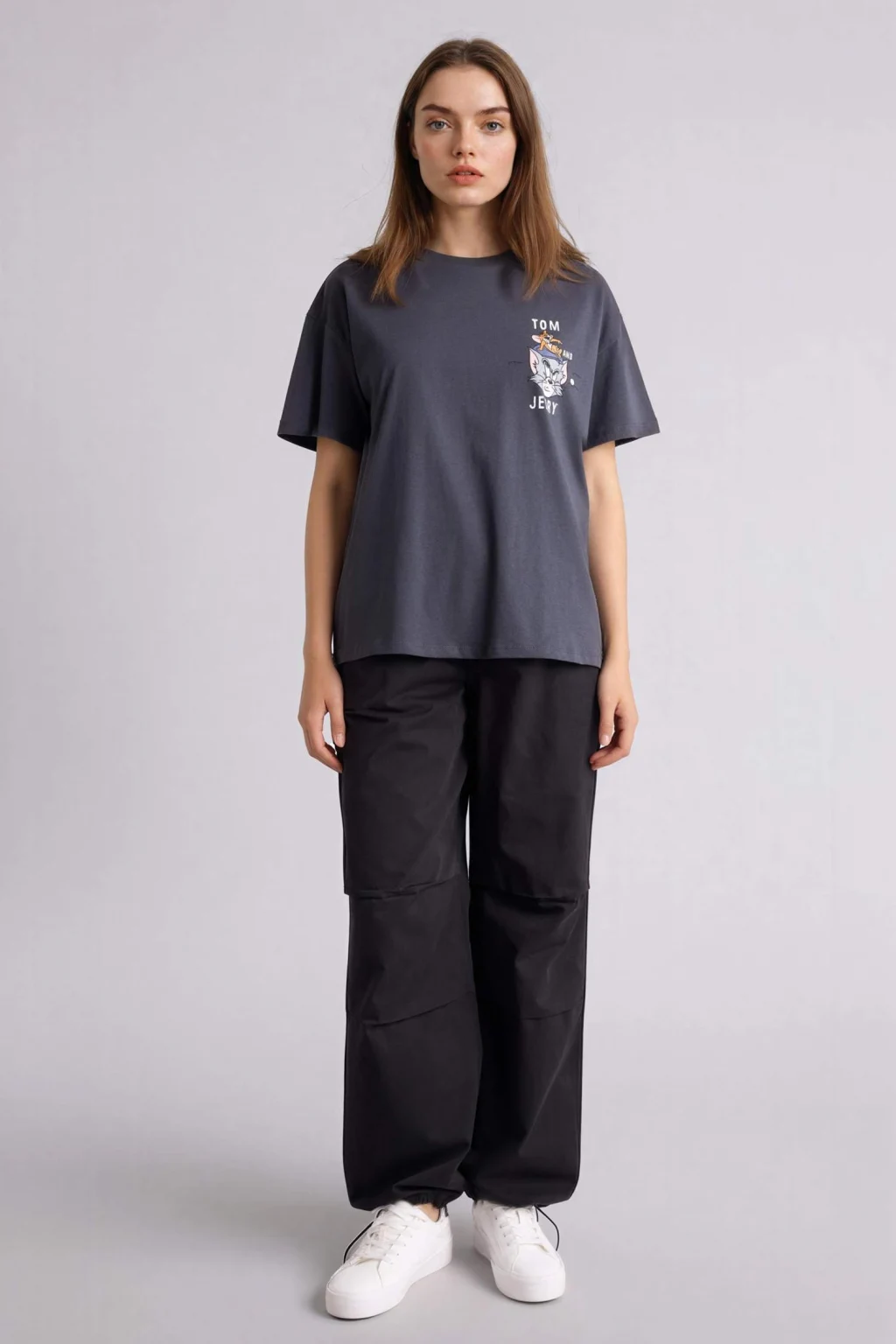 Defacto G5026AXAR191 Antrasit Tom & Jerry Oversıze Sırt Baskılı Tişört