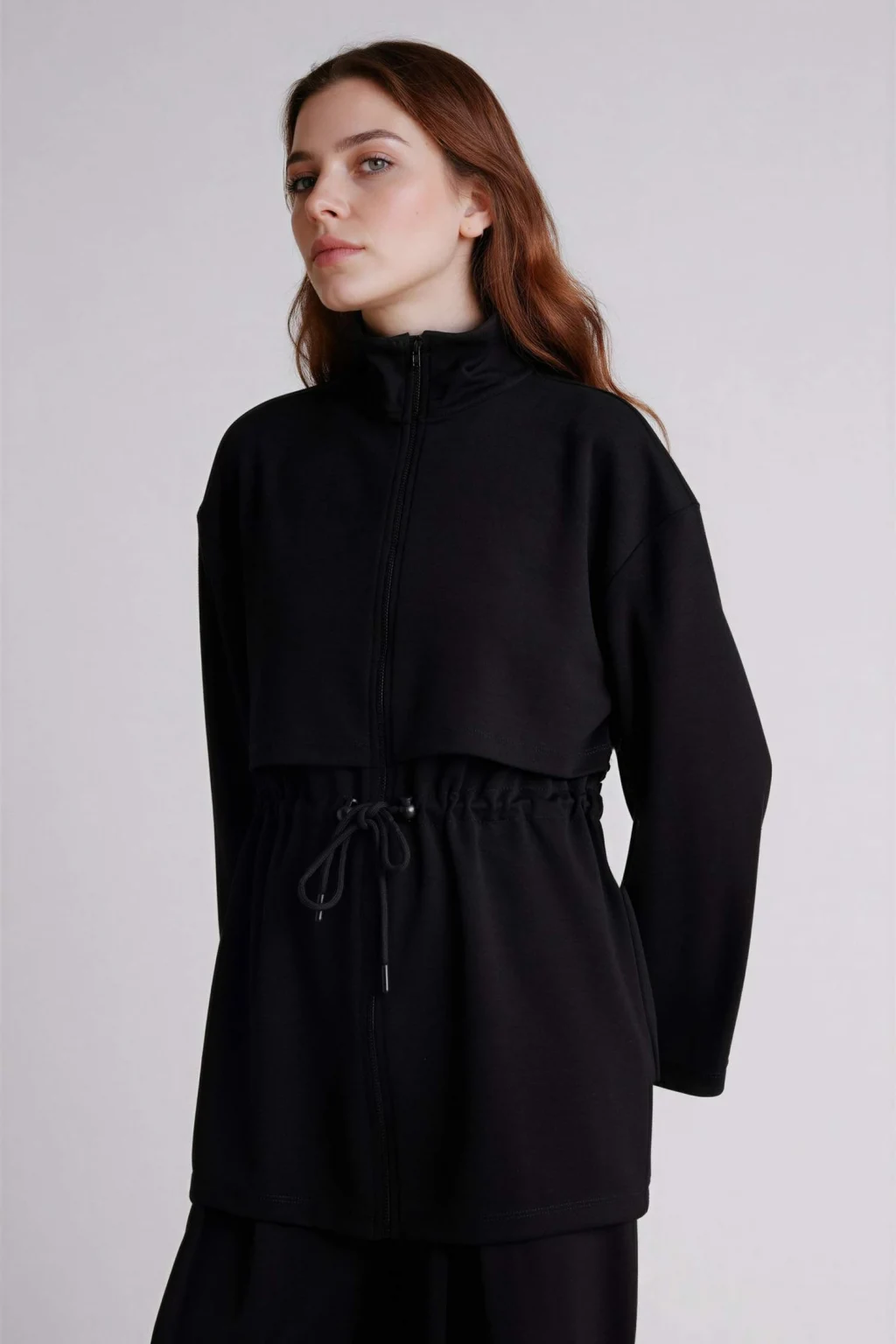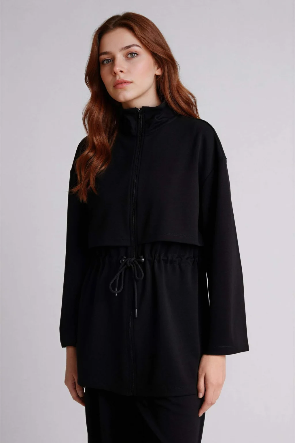 Defacto G2602AXBK81 Siyah Long Fıt Dik Yaka Modal Hırka