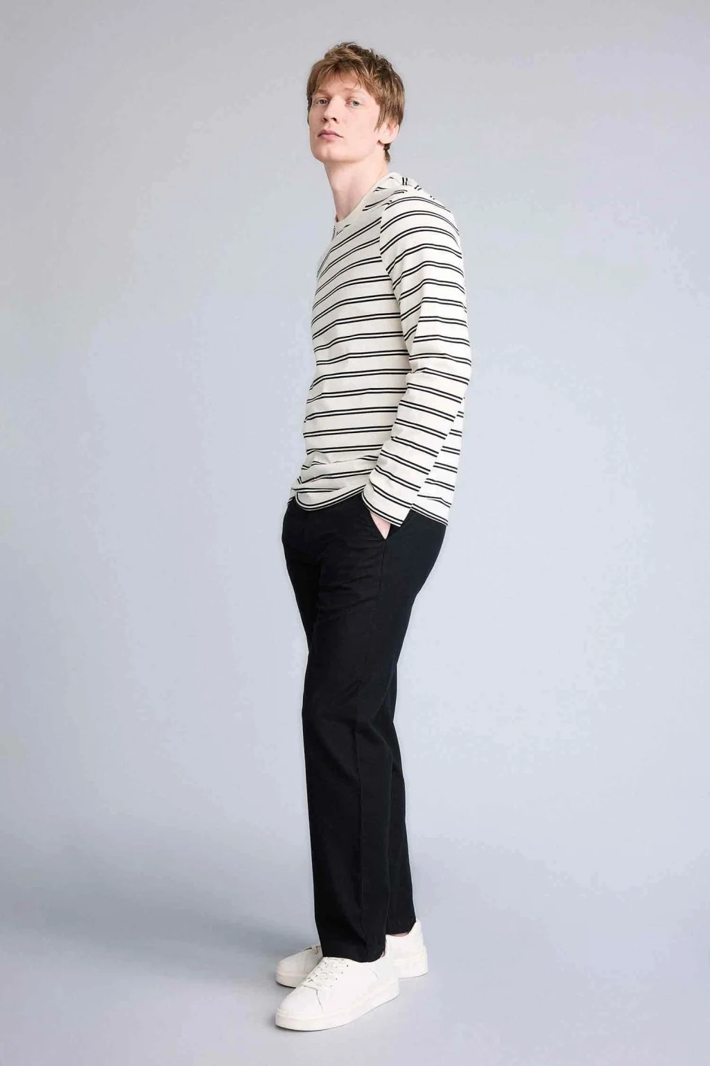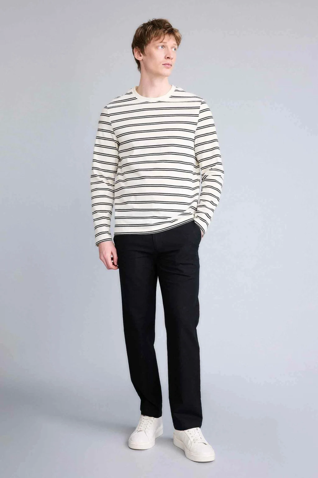 Modern ve dengeli bir silüet sunan Regular Fit kesimiyle üstün konforu şıklıkla birleştirir. Vücut hatlarını zorlamayan rahat yapısı ve zamansız tasarımı, günlük şıklıktan ofis stiline kadar her ortamda dengeli ve çok yönlü bir kullanım sunar.