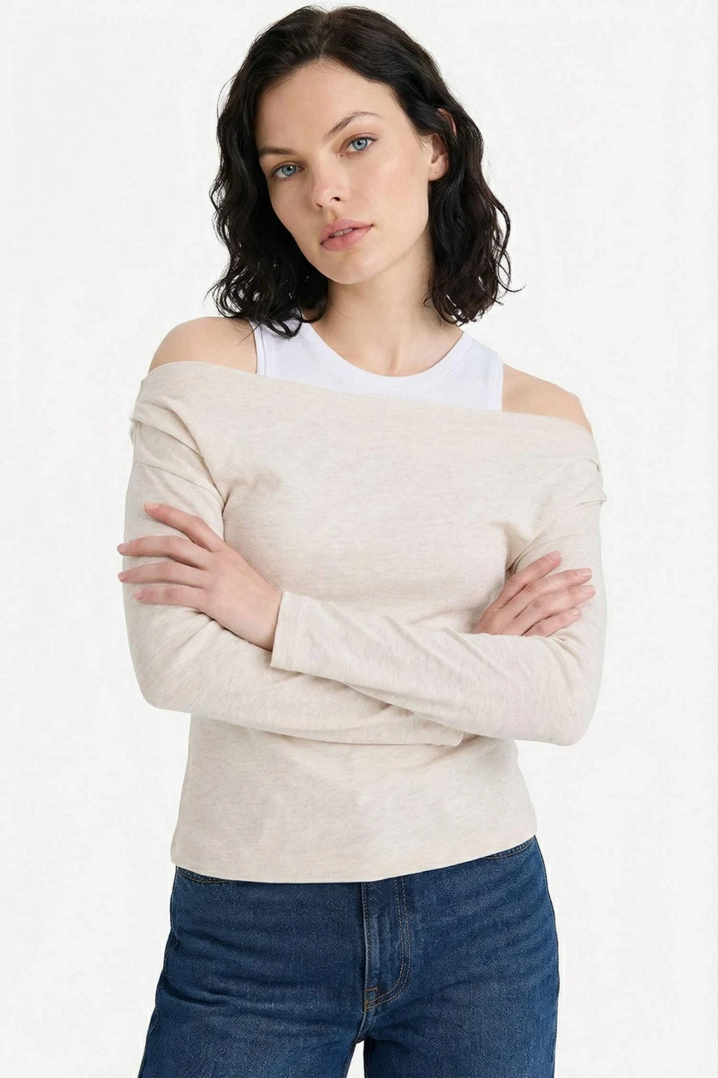 Slim Fit Dar Kesim Tek Omuzlu Çift Katmanlı Ribana Uzun Kollu Tişört, modern tek omuz tasarımı ve dar kesimiyle şık bir siluet sunar. Çift katmanlı ribana dokusu, hem esneklik hem de konfor sağlar. Günlük veya özel kombinlerde dikkat çekici bir tarz yaratır.