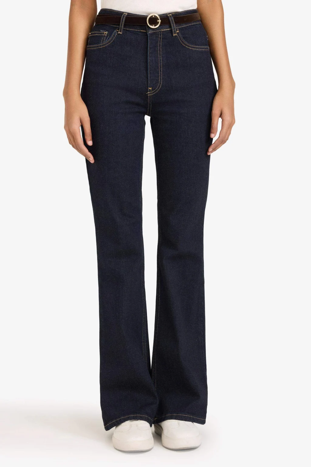Mia Flare Fit Yüksek Bel Uzun Jean Pantolon, yüksek bel kesimiyle beli zarif bir şekilde vurgularken, flare paçalarıyla feminen ve modern bir siluet yaratır. Dayanıklı denim kumaşı uzun ömürlü kullanım sağlar ve günlük hareketlerde konfor sunar. Klasik mavi tonu ve şık kesimiyle hem günlük kombinlere hem de özel stil tercihlerine kolayca uyum sağlar.