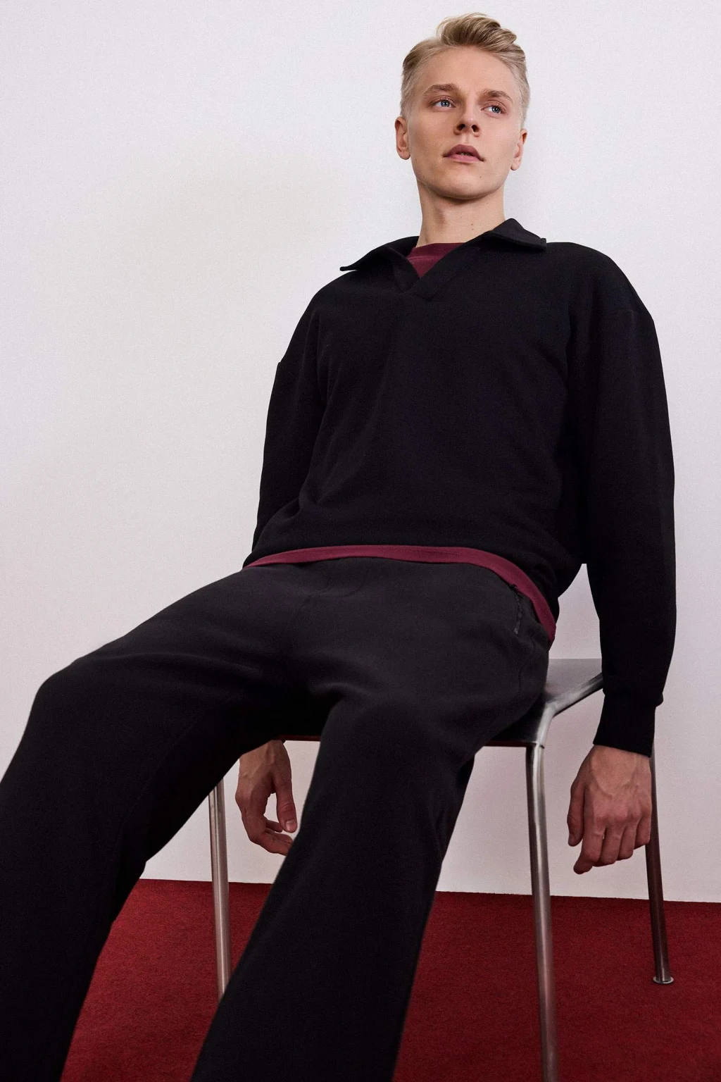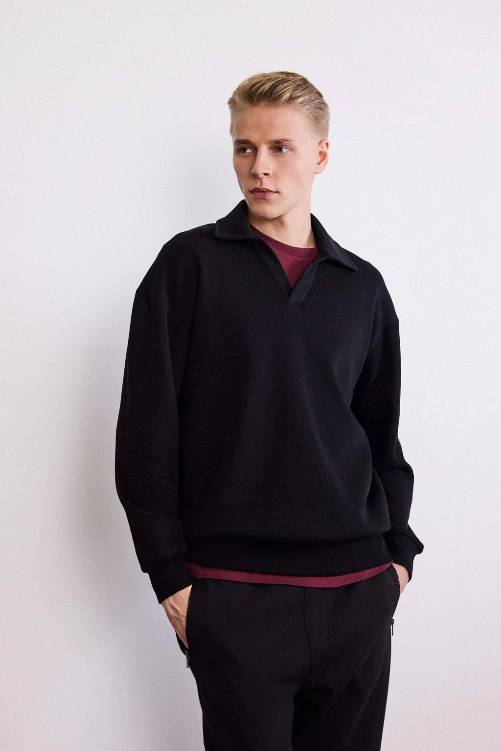 LCWAIKIKI Classic Siyah Polo Yaka Erkek Sweatshirt
