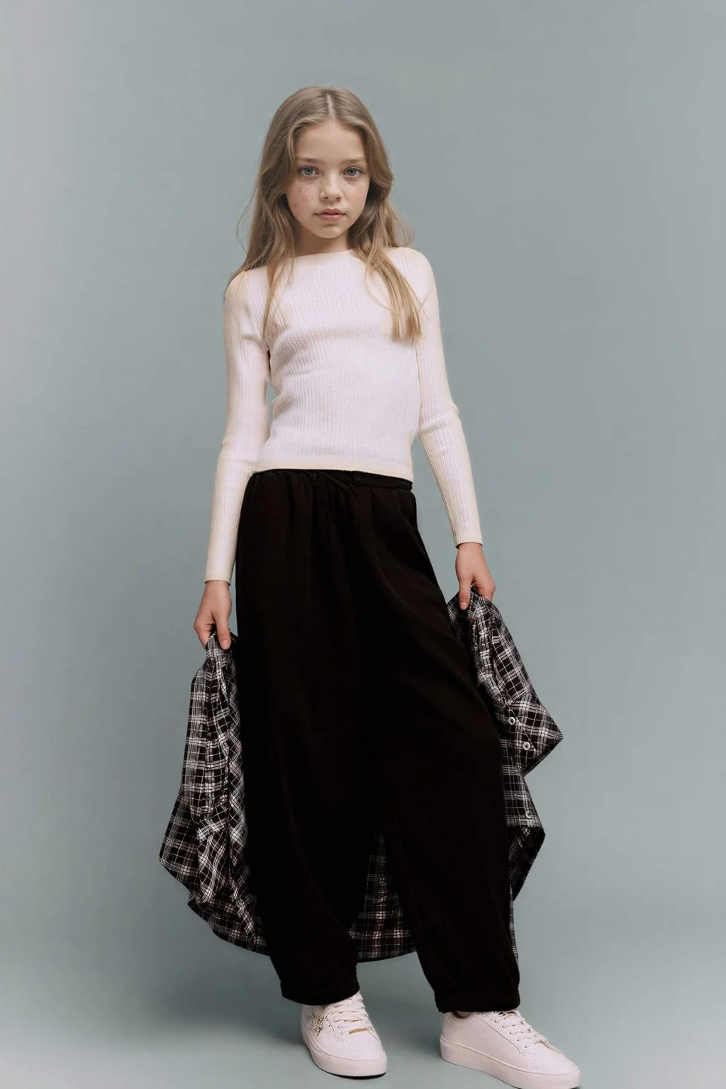Kız çocuklar için tasarlanan balloon fit esnek bantlı paça pantolon, rahat kalıbı sayesinde gün boyu özgür hareket imkânı sunar. Esnek bel ve paça detayları konforu artırırken, modern tasarımıyla günlük kombinlere şık bir dokunuş katar.