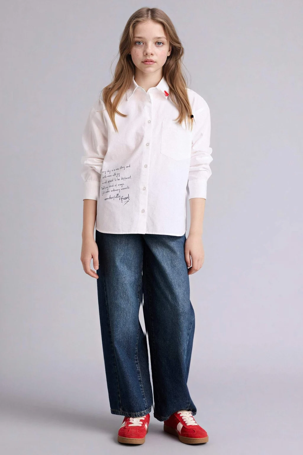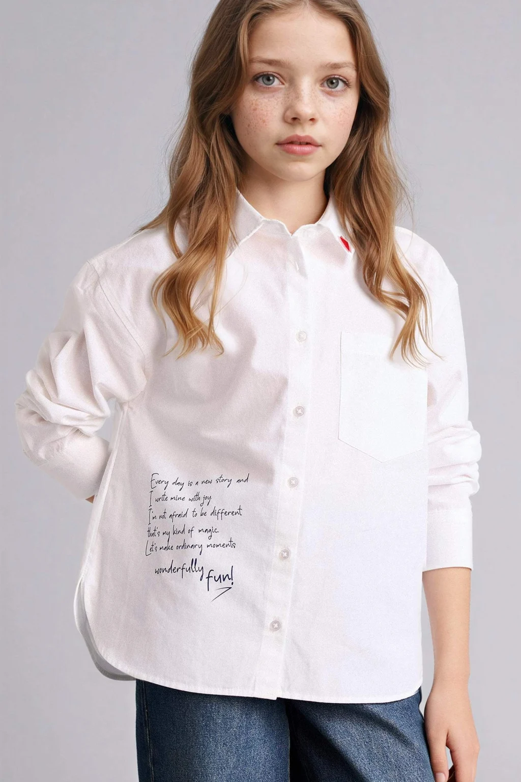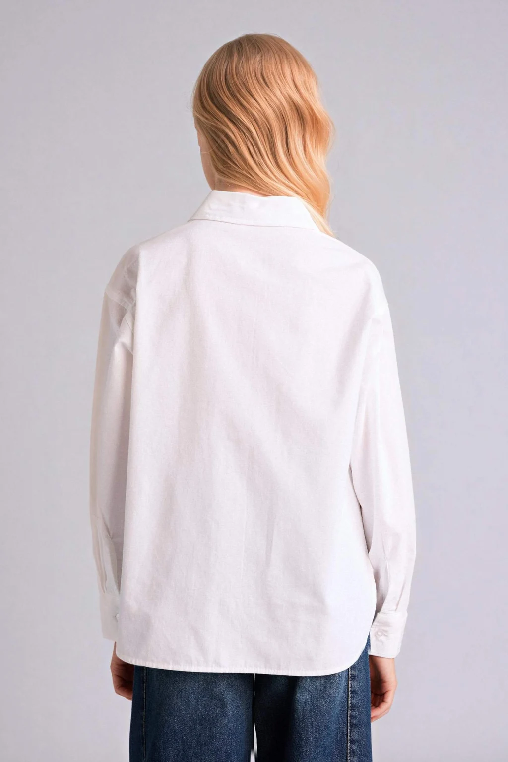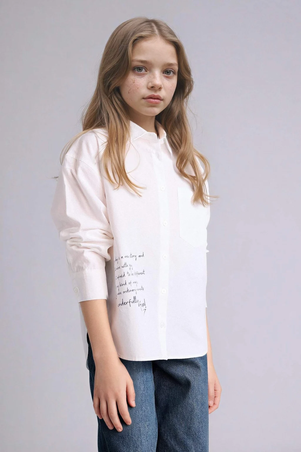 Şık tasarımıyla hem özel günlerde hem de günlük kullanımda tercih edilebilen kız çocuk poplin gömlek, baskısıyla zarif bir dokunuş sunar.