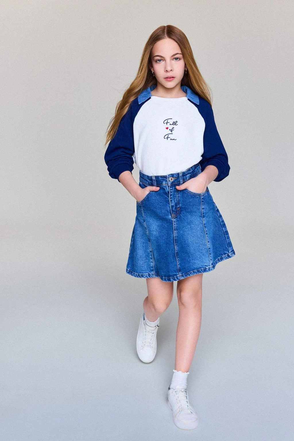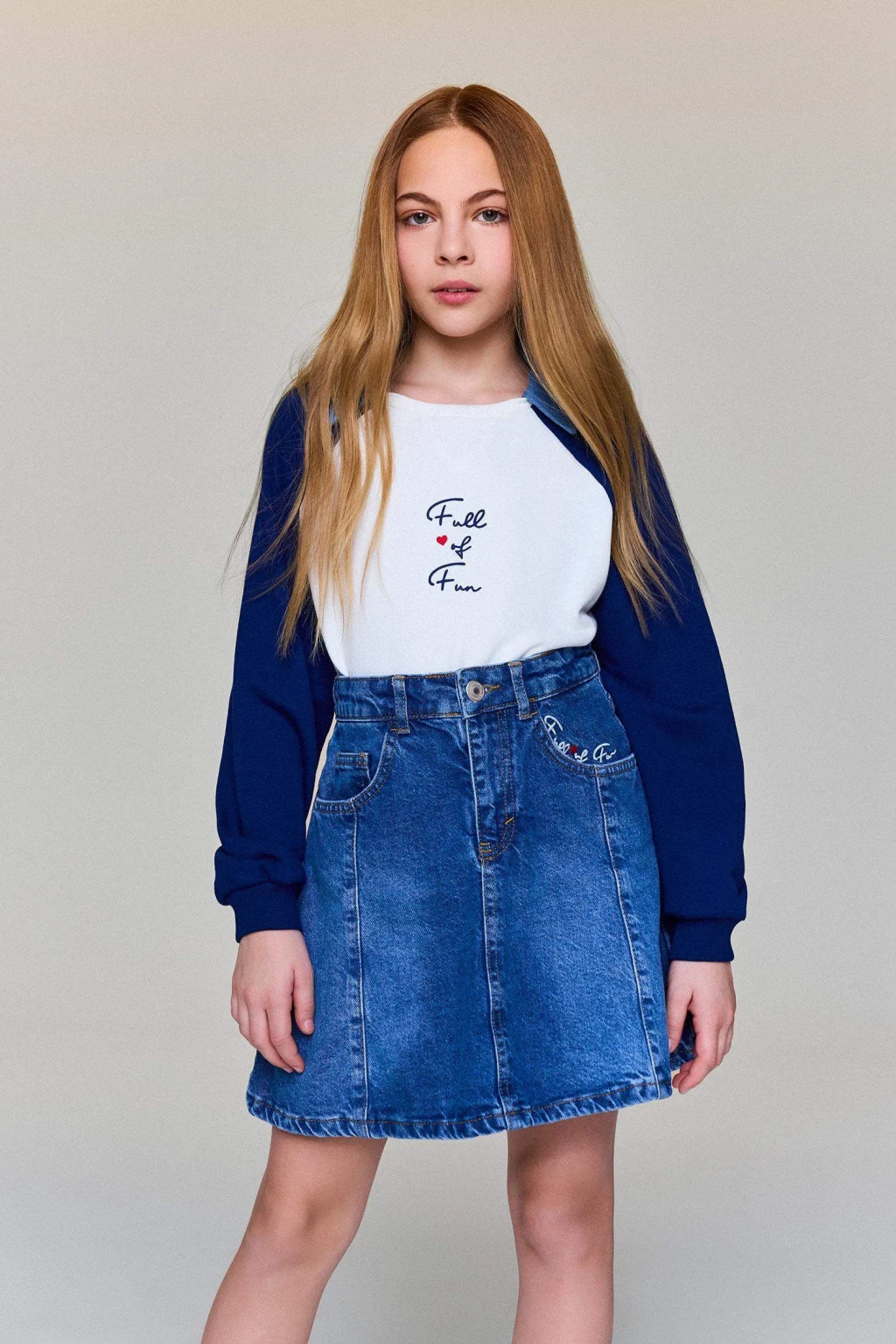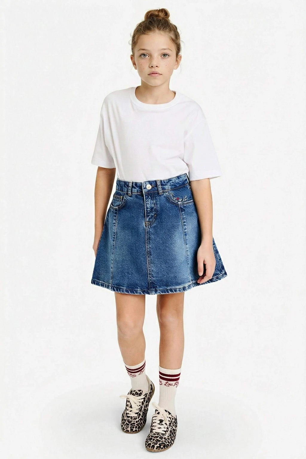 Kız çocuklar için tasarlanan jean etek, rahat kesimi ve dayanıklı yapısıyla günlük kullanıma uygundur. Şık ve klasik tasarımı sayesinde çeşitli kombinlerde kolayca tercih edilebilir.